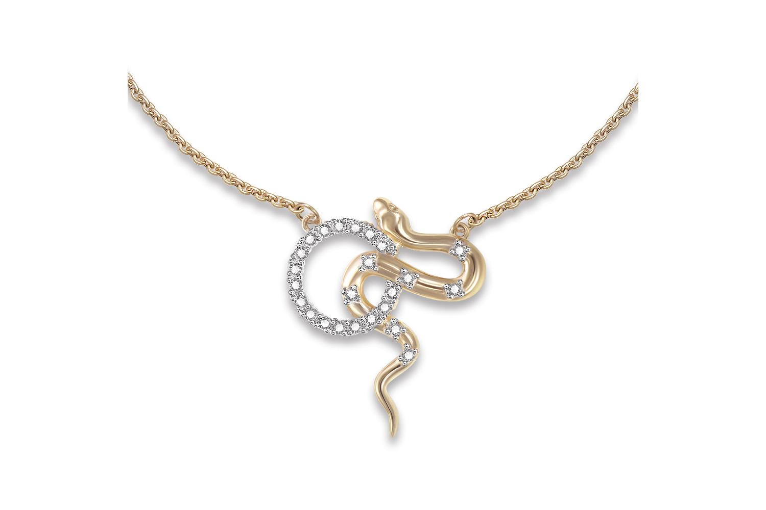 Мастера компании NEWGOLD, приложив всё свое мастерство и искусство, создали для Вас на нашем собственном производстве Колье Змея из жёлтого золота с 24 фианитами.