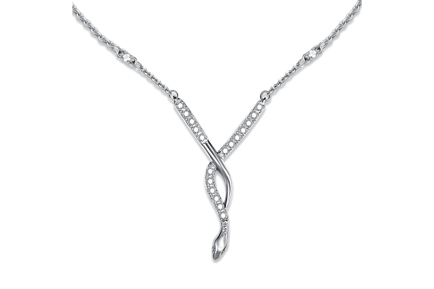 Мастера компании NEWGOLD, приложив всё свое мастерство и искусство, создали для Вас на нашем собственном производстве Колье Змея из белого золота с 20 фианитами.