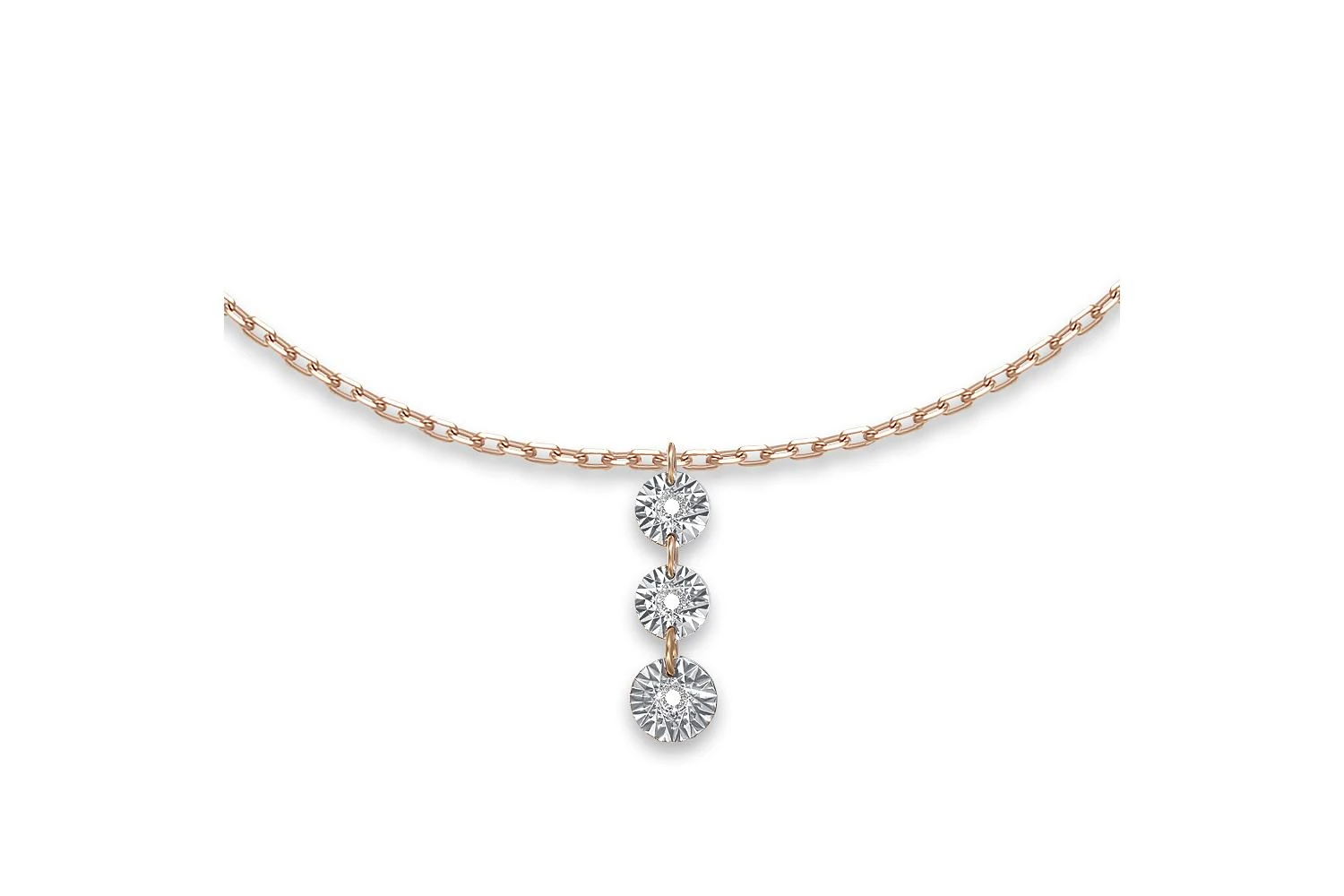 Мастера компании NEWGOLD, приложив всё свое мастерство и искусство, создали для Вас на нашем собственном производстве Колье из красного золота с 3 бриллиантами.