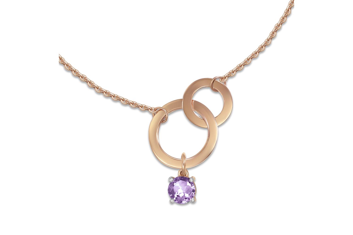 Мастера компании NEWGOLD, приложив всё свое мастерство и искусство, создали для Вас на нашем собственном производстве Колье Круг из красного золота с аметистом.