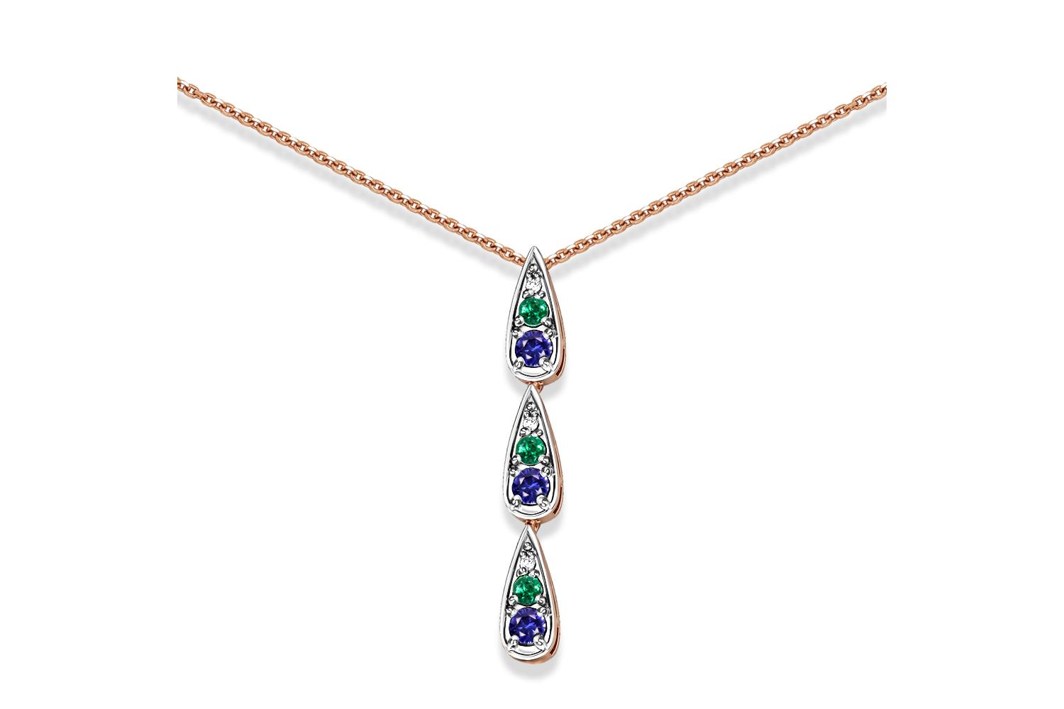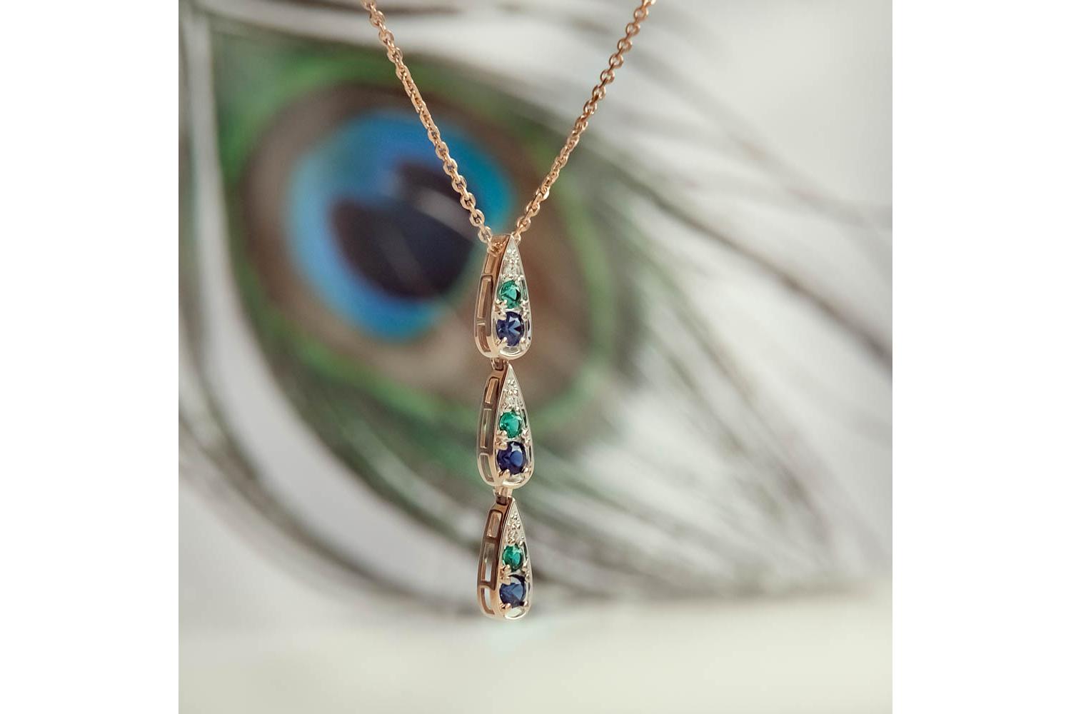 Мастера компании NEWGOLD, приложив всё свое мастерство и искусство, создали для Вас на нашем собственном производстве Колье из красного золота с корундами, фианитами и изумрудами.