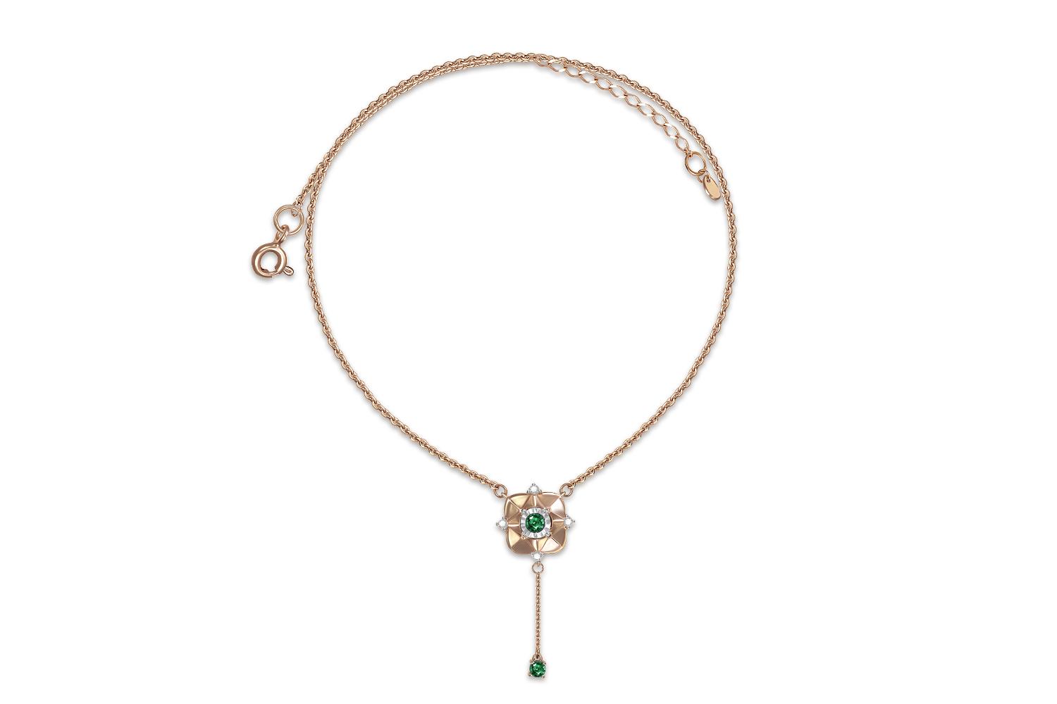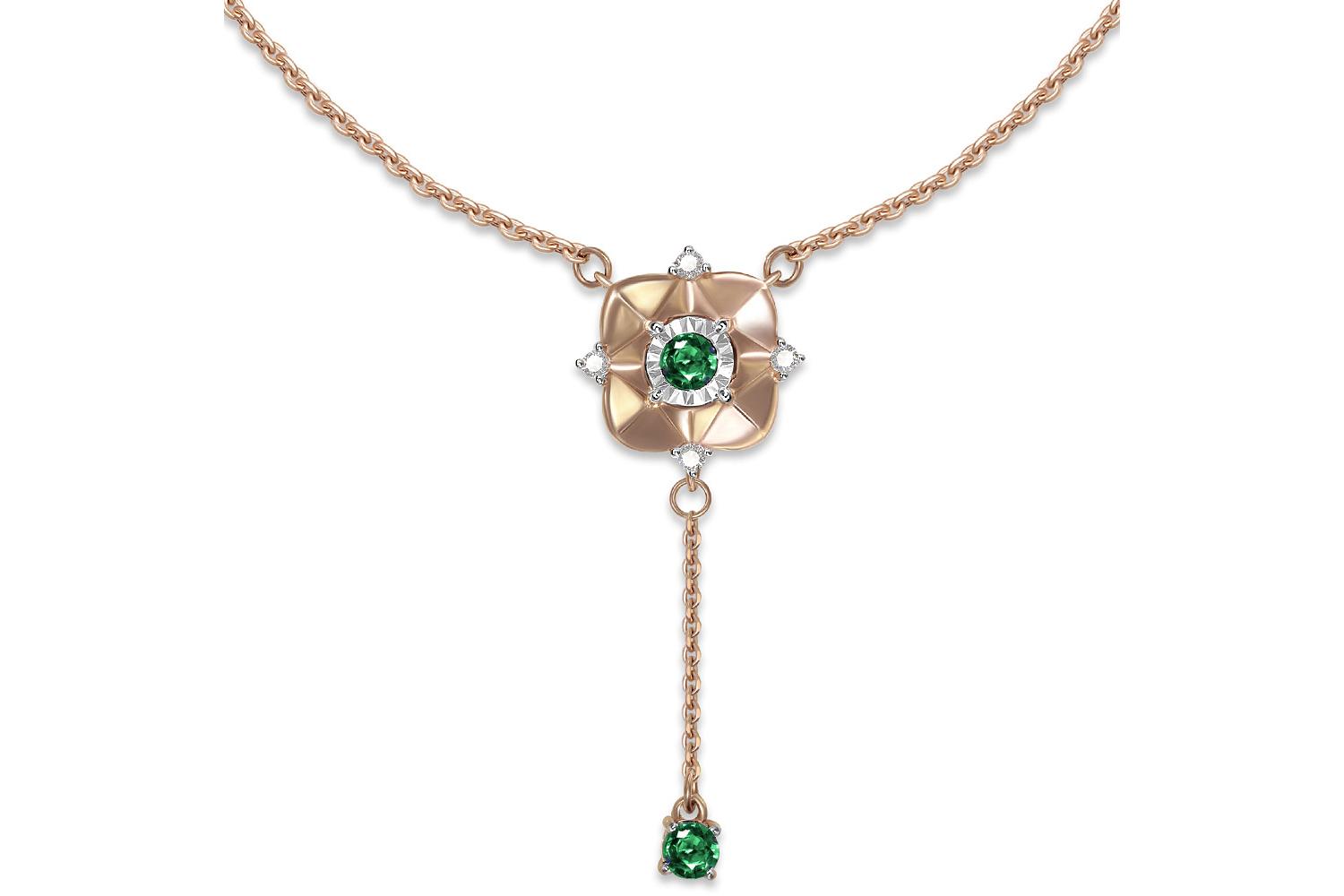 Мастера компании NEWGOLD, приложив всё свое мастерство и искусство, создали для Вас на нашем собственном производстве Колье из красного золота с 2 изумрудами и 4 бриллиантами.