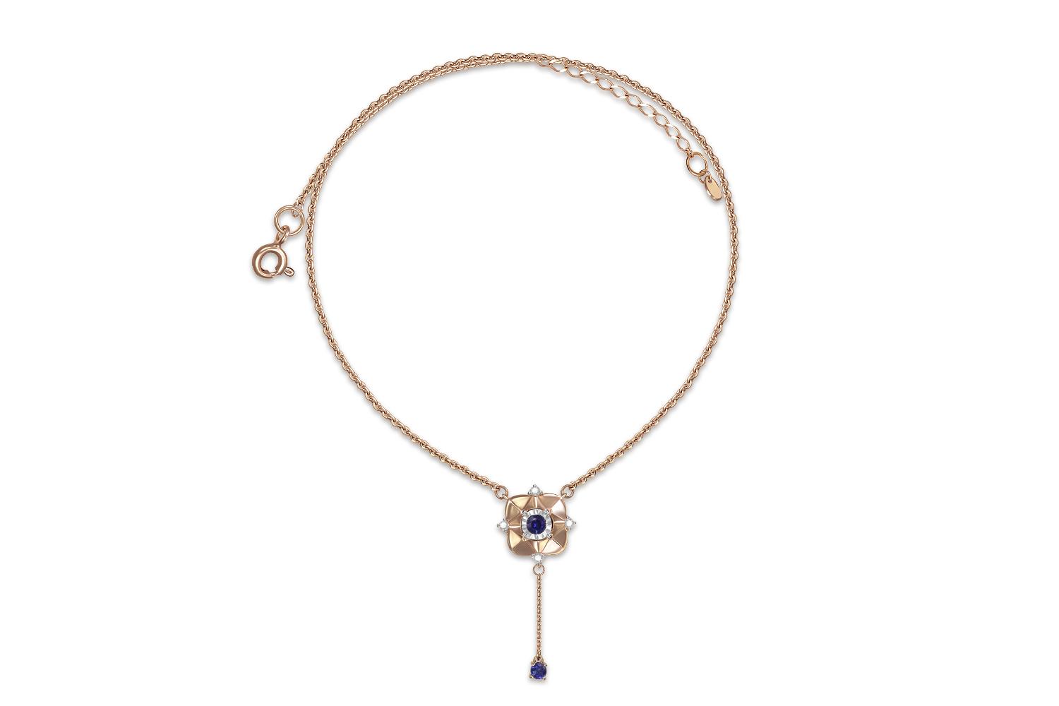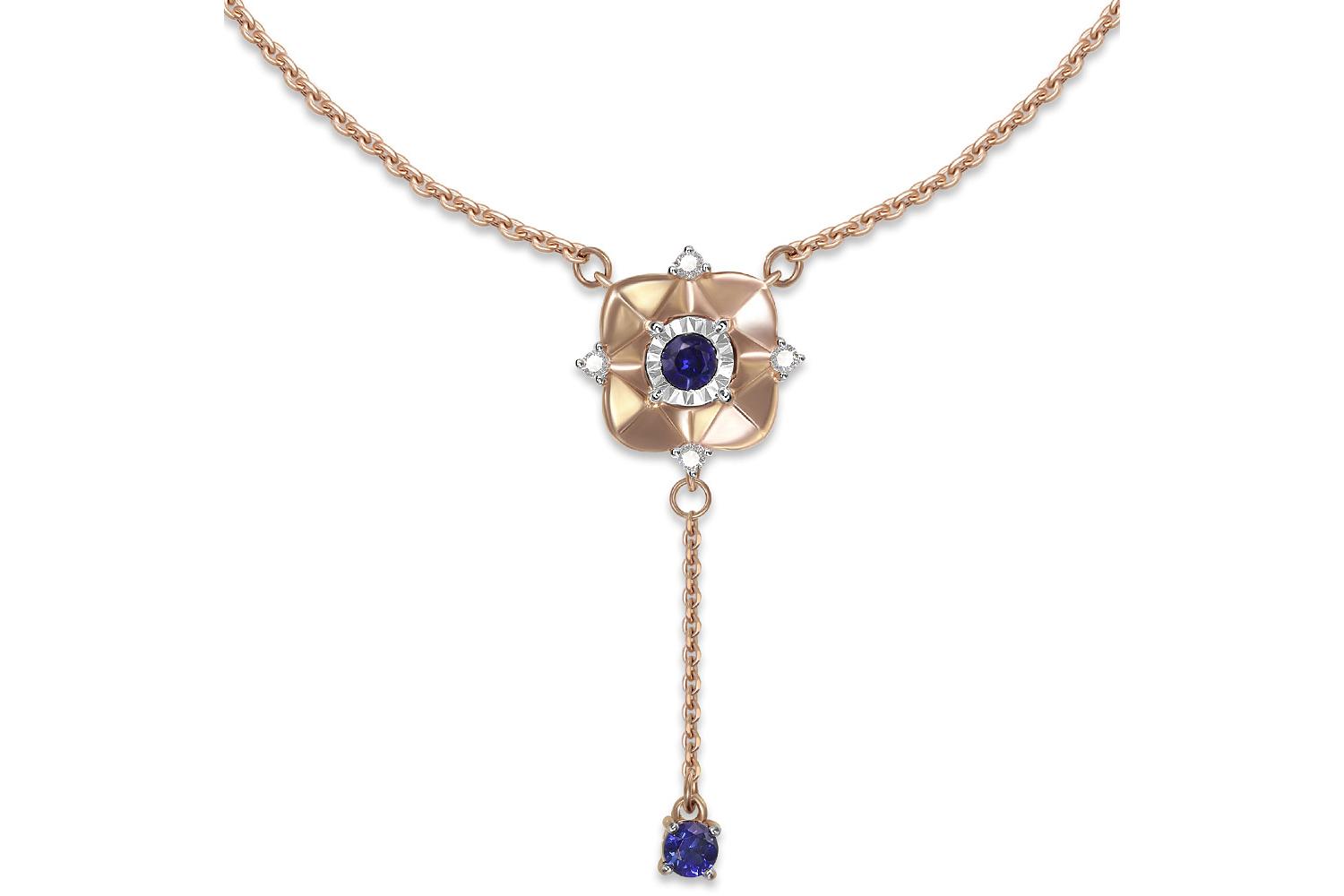 Мастера компании NEWGOLD, приложив всё свое мастерство и искусство, создали для Вас на нашем собственном производстве Колье из красного золота с 2 корундами и 4 бриллиантами.
