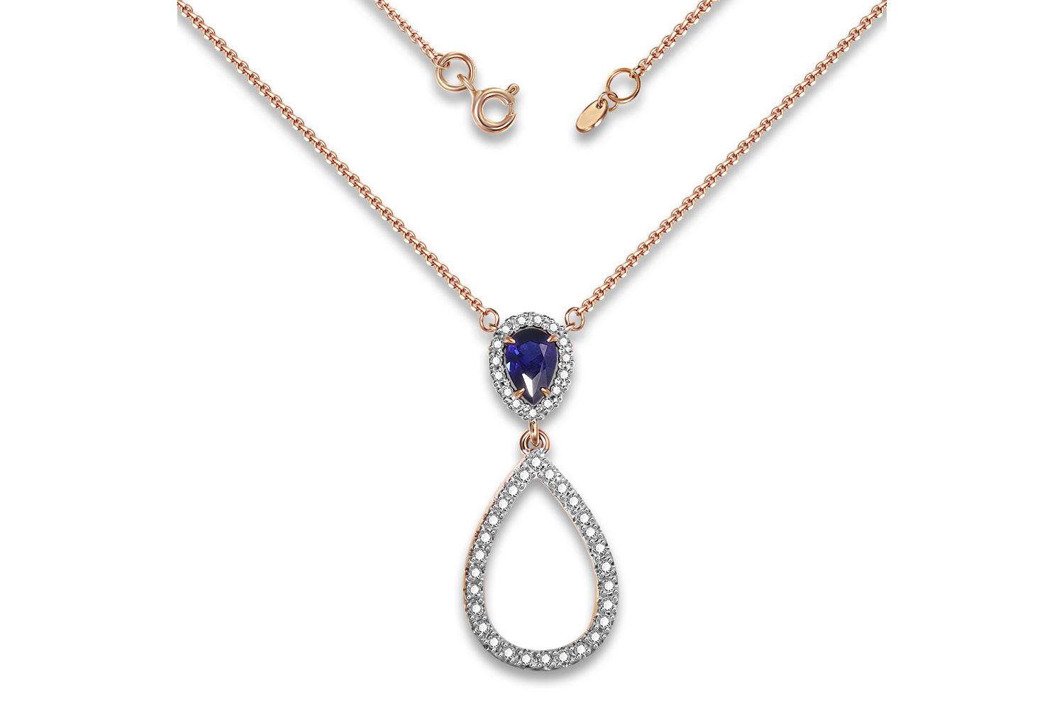 Мастера компании NEWGOLD, приложив всё свое мастерство и искусство, создали для Вас на нашем собственном производстве Колье из красного золота с корундом и 43 бриллиантами.
