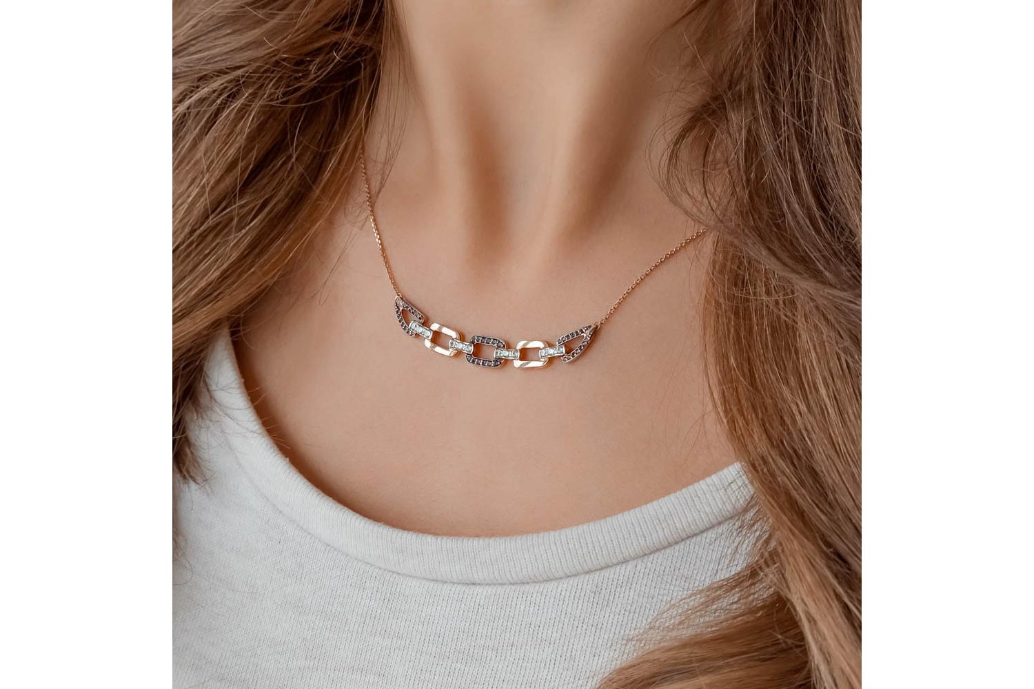 Мастера компании NEWGOLD, приложив всё свое мастерство и искусство, создали для Вас на нашем собственном производстве Колье из красного золота с 50 фианитами.