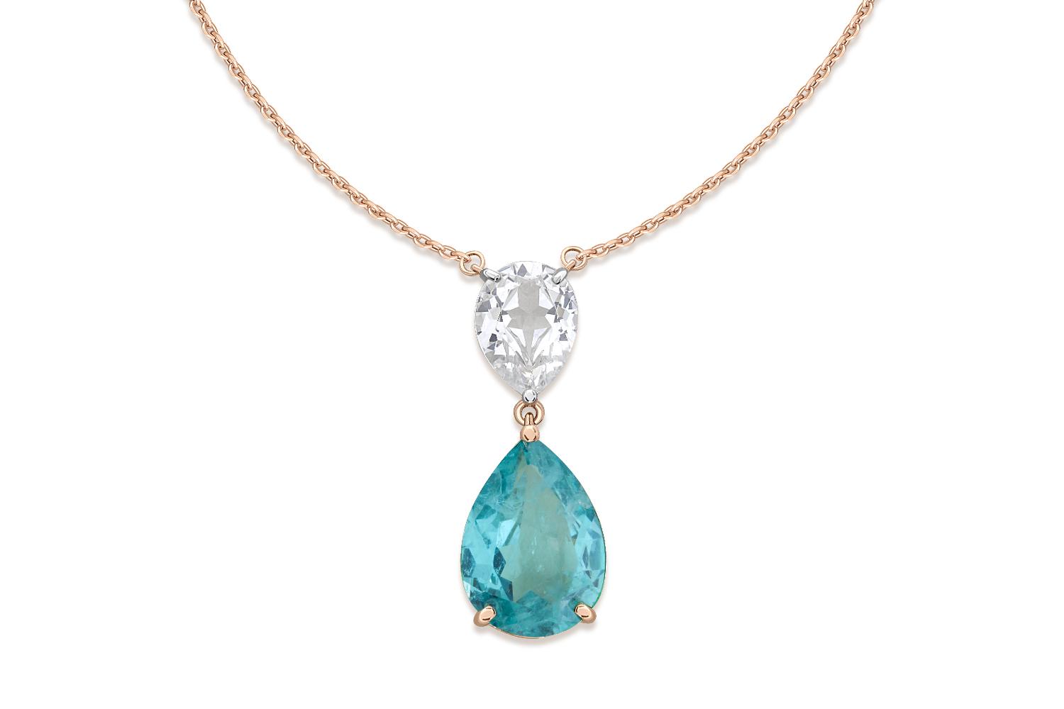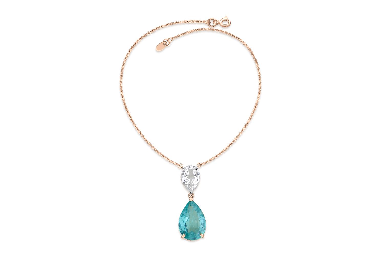 Параиба синтетическая, количество 1 шт., огранка груша, размер 15ˣ10 ; Наноситал Топаз бесцветный, количество 1 шт., огранка груша, размер 10ˣ7