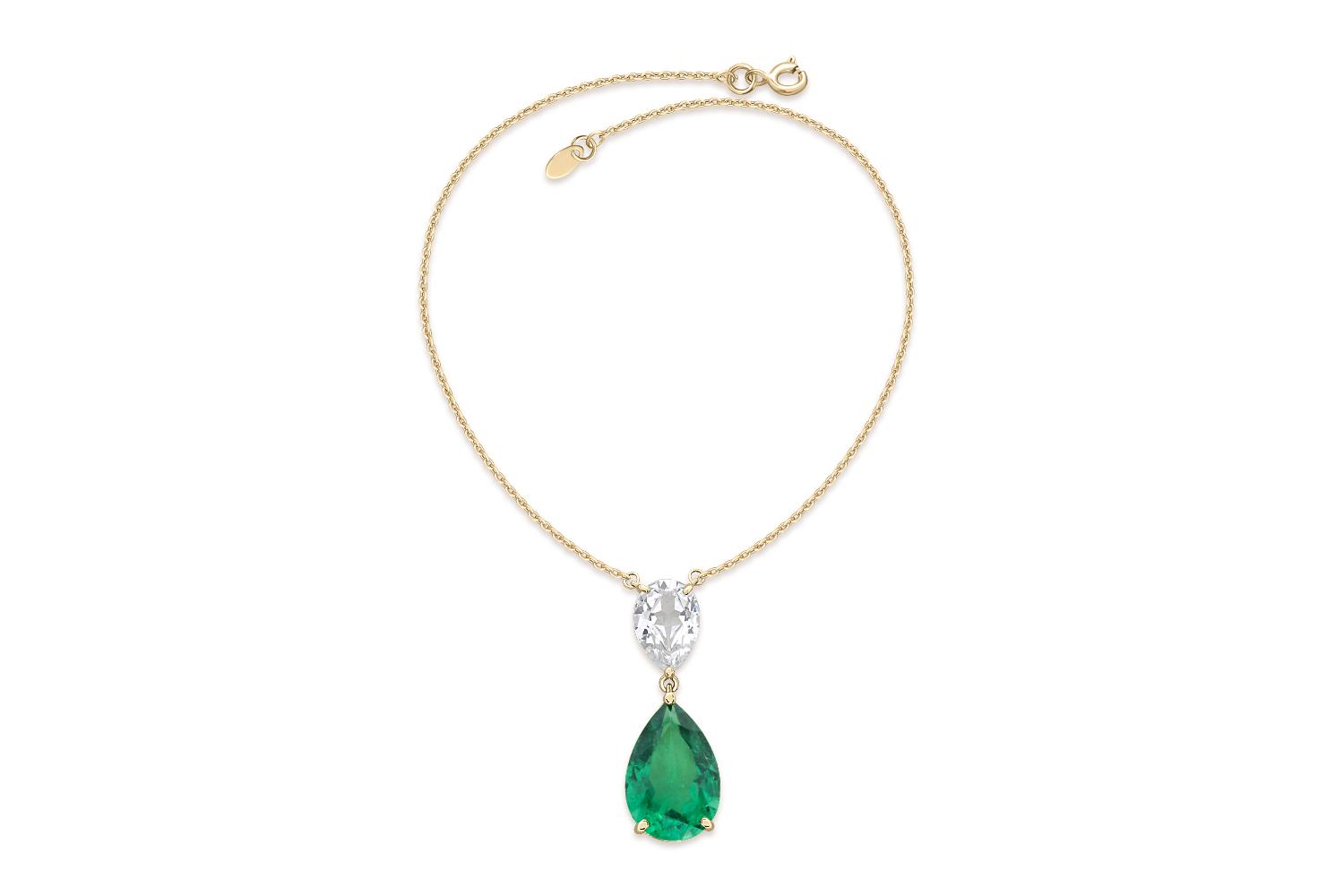 Наноситал Изумруд, количество 1 шт., огранка груша, размер 15ˣ10 ; Наноситал Топаз бесцветный, количество 1 шт., огранка груша, размер 10ˣ7