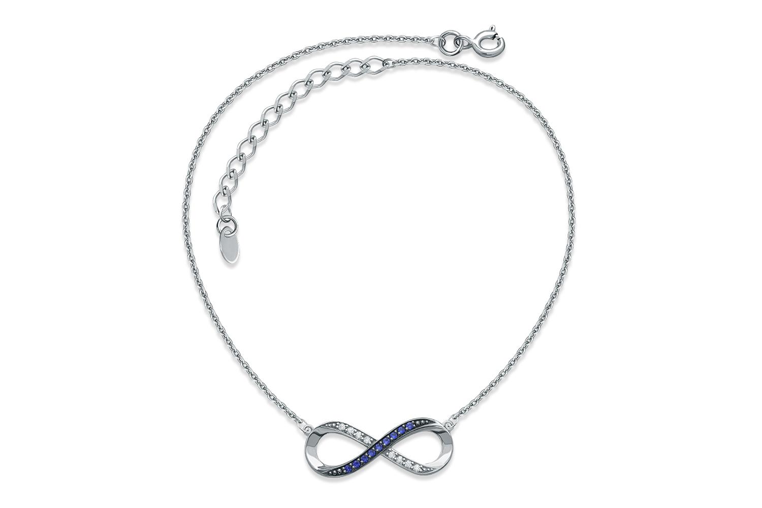 Мастера компании NEWGOLD, приложив всё свое мастерство и искусство, создали для Вас на нашем собственном производстве Колье Бесконечность из белого золота с 9 корундами и 8 фианитами.