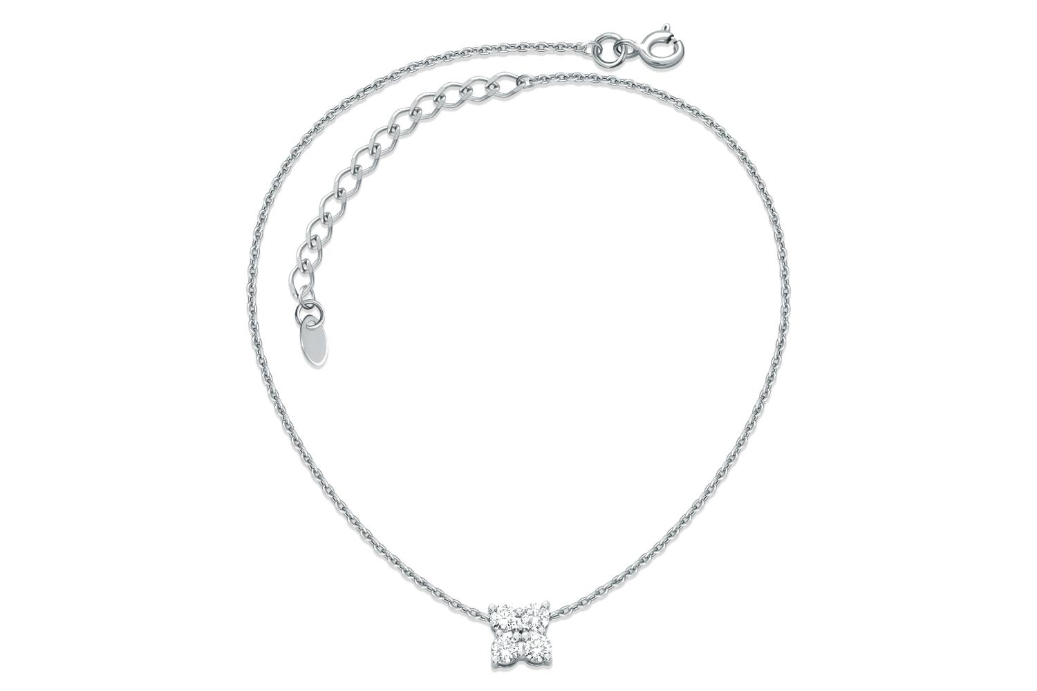 Мастера компании NEWGOLD, приложив всё свое мастерство и искусство, создали для Вас на нашем собственном производстве Колье Клевер из белого золота с 4 фианитами.