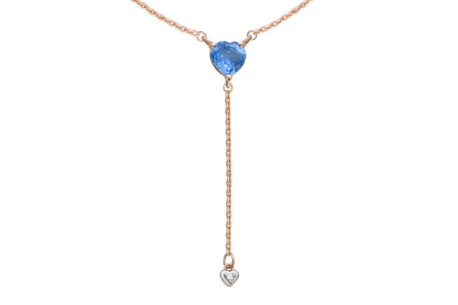 Мастера компании NEWGOLD, приложив всё свое мастерство и искусство, создали для Вас на нашем собственном производстве Колье Сердце из красного золота с топазом swiss и фианитом.