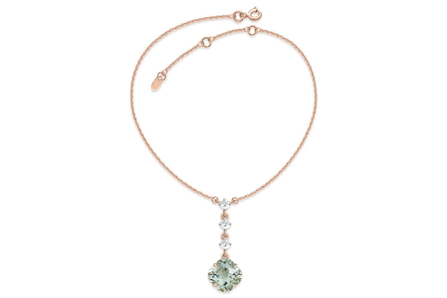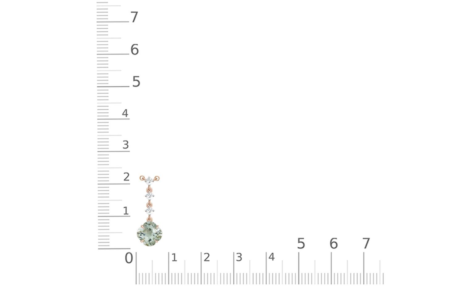 Аметист зеленый натуральный, количество 1 шт., огранка цветок, размер 8 мм ; Фианит б/цв, количество 3 шт., огранка круг, размер 2,5 мм