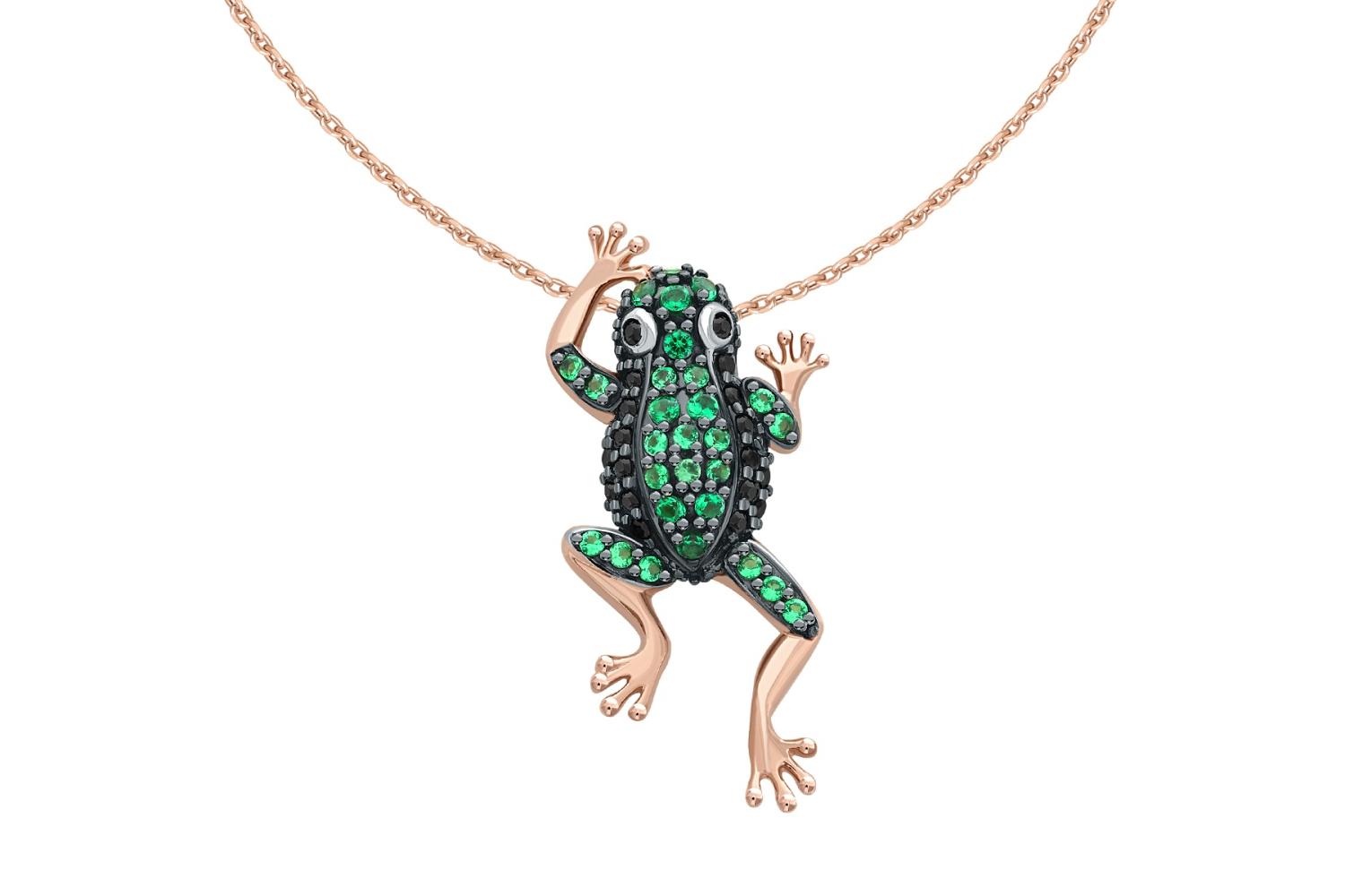 Мастера компании NEWGOLD, приложив всё свое мастерство и искусство, создали для Вас на нашем собственном производстве Колье Лягушка из красного золота с 47 фианитами.