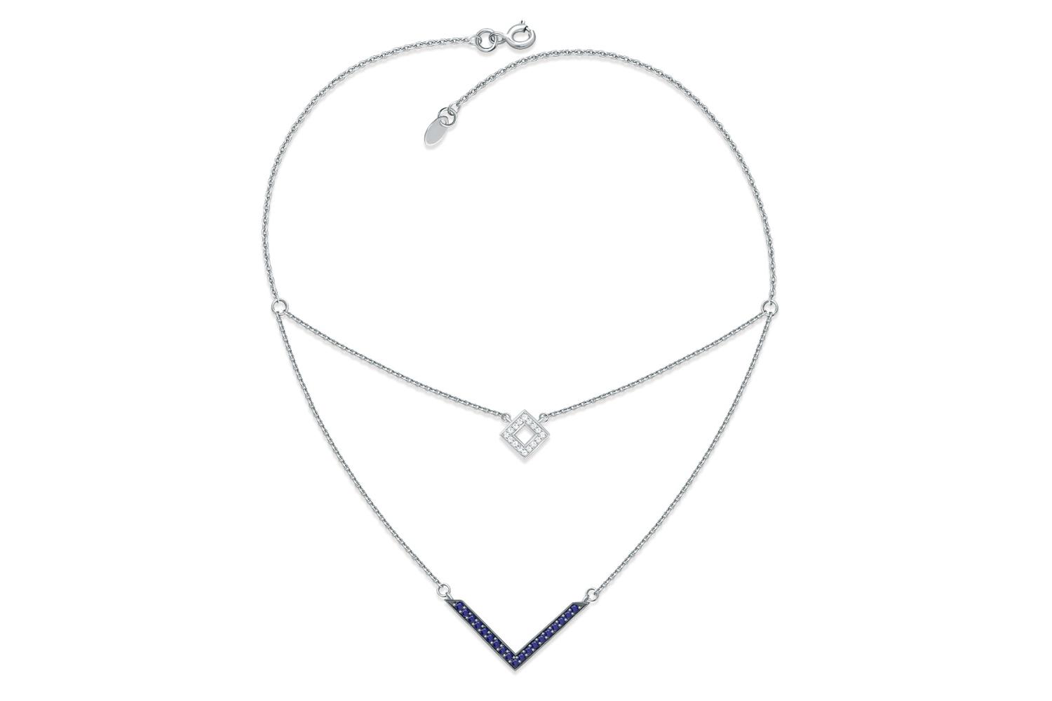 Мастера компании NEWGOLD, приложив всё свое мастерство и искусство, создали для Вас на нашем собственном производстве Колье Квадрат из белого золота с 19 сапфирами и 16 бриллиантами.