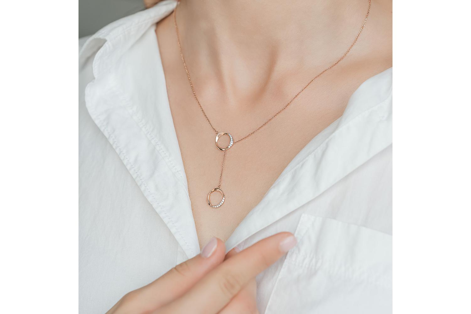Мастера компании NEWGOLD, приложив всё свое мастерство и искусство, создали для Вас на нашем собственном производстве Колье Круг из красного золота с 16 фианитами.