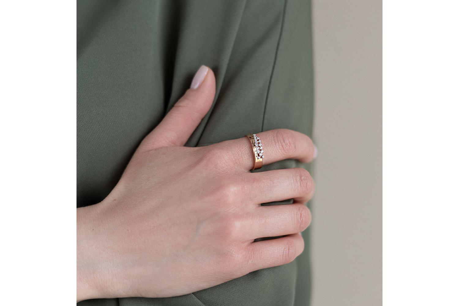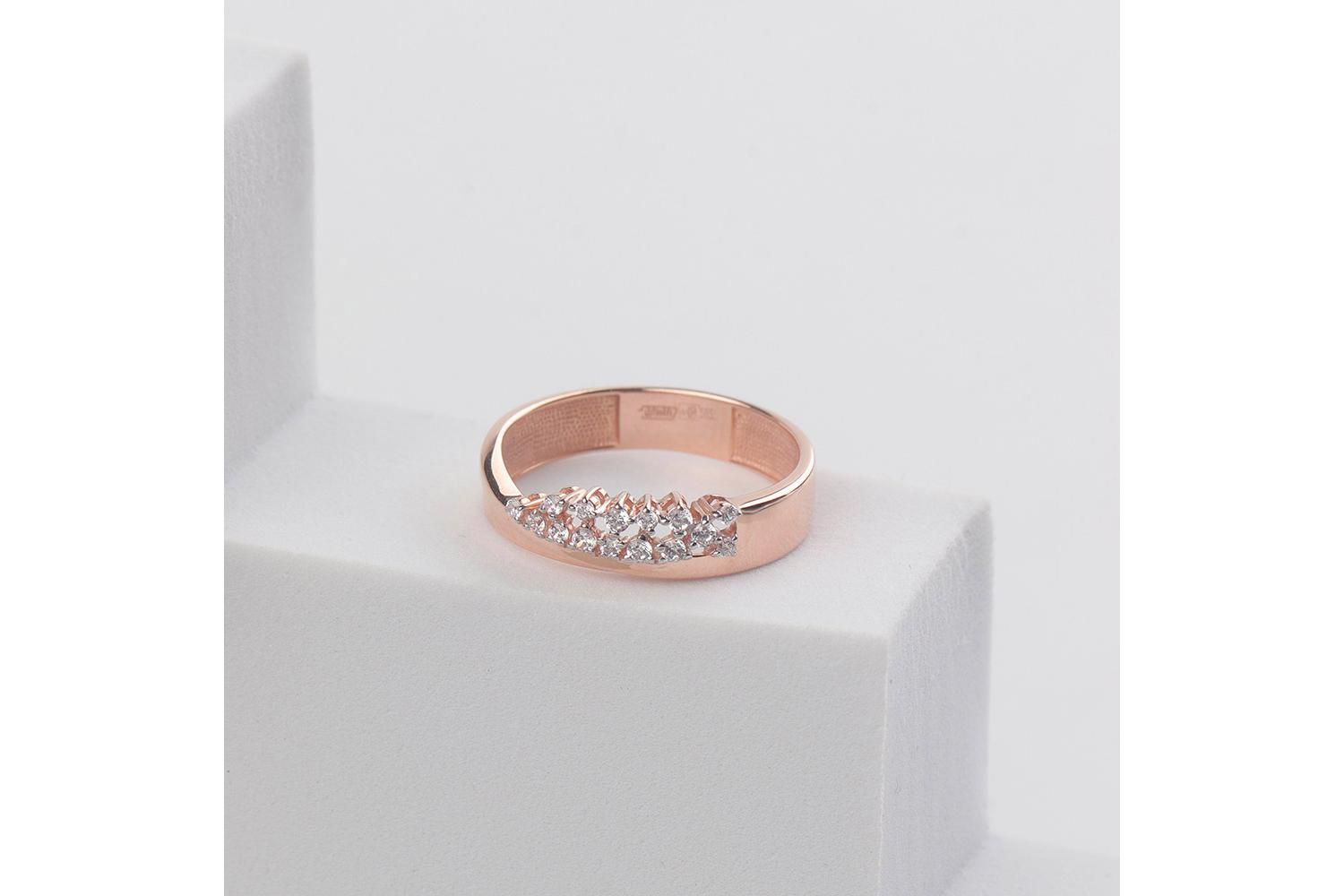 Мастера компании NEWGOLD, приложив всё свое мастерство и искусство, создали для Вас на нашем собственном производстве Кольцо из красного золота с 15 фианитами.