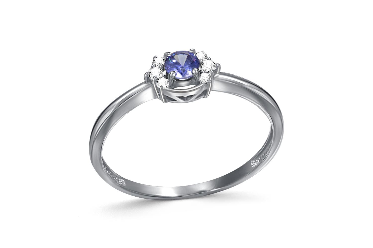 Фианит Танзанит, количество 1 шт., огранка круг, размер 3,5 мм ; Фианит б/цв, количество 2 шт., огранка круг, размер 1,5 мм ; Фианит б/цв, количество 4 шт., огранка круг, размер 1,25 мм