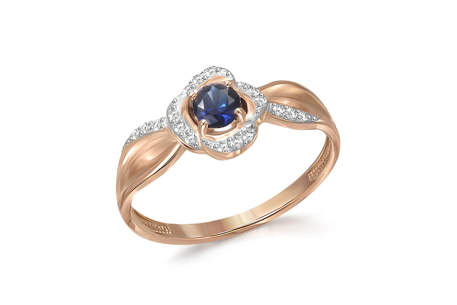 Мастера компании NEWGOLD, приложив всё свое мастерство и искусство, создали для Вас на нашем собственном производстве Кольцо Цветок из красного золота с сапфиром и 18 бриллиантами.