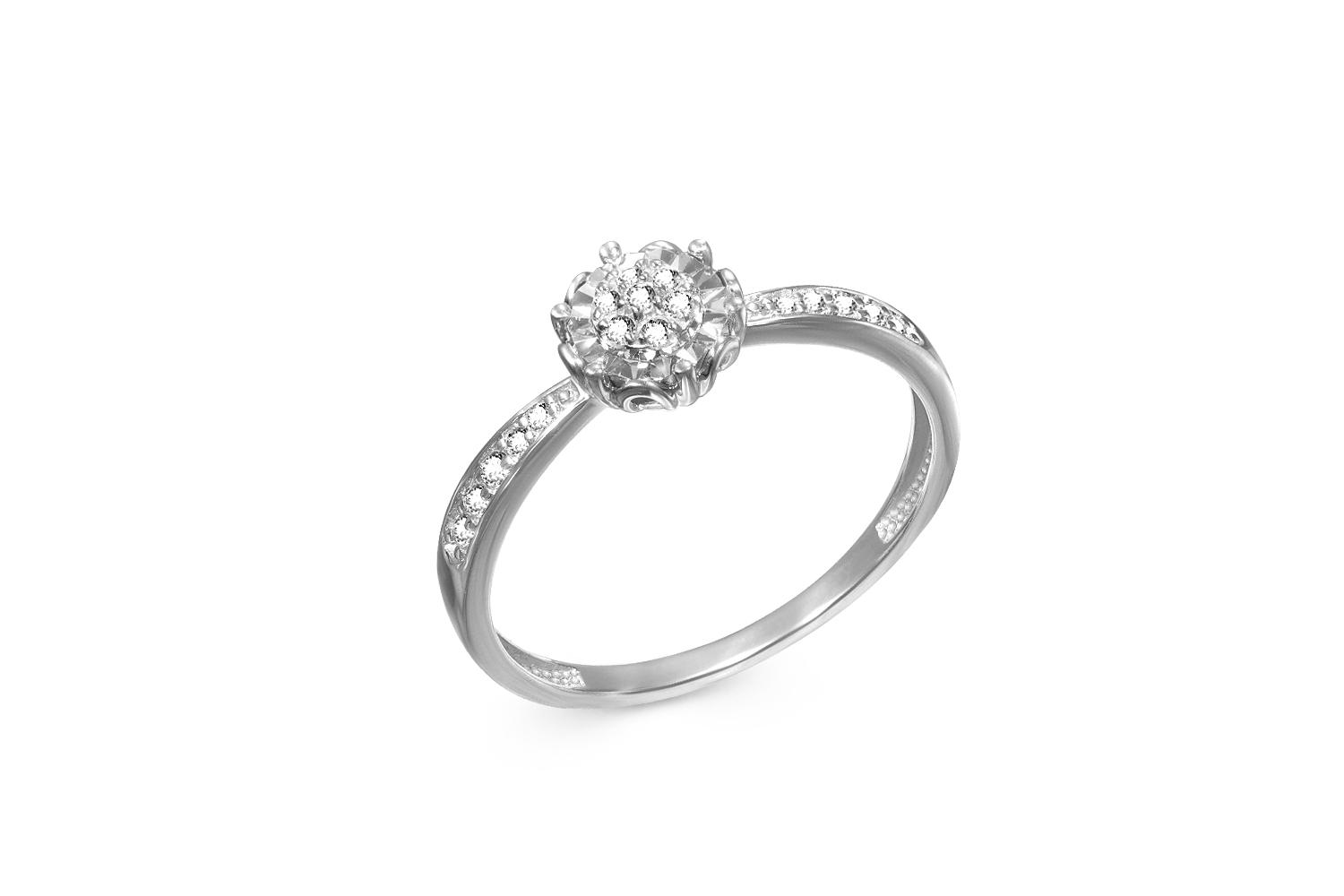 Мастера компании NEWGOLD, приложив всё свое мастерство и искусство, создали для Вас на нашем собственном производстве Кольцо Цветок из белого золота с 17 бриллиантами.