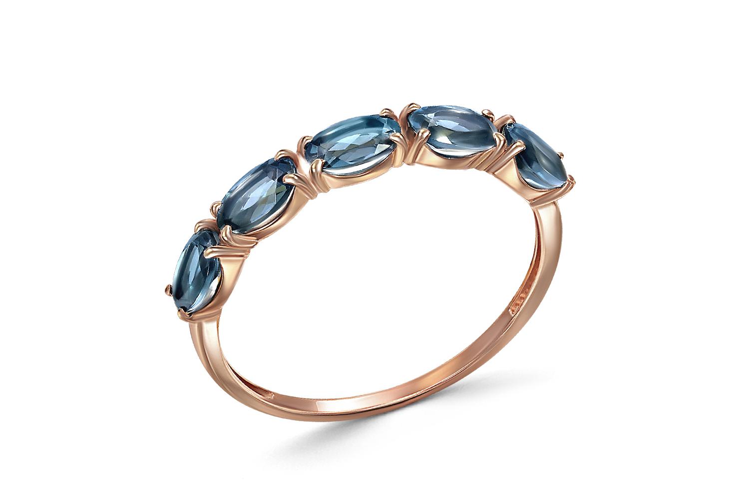 Мастера компании NEWGOLD, приложив всё свое мастерство и искусство, создали для Вас на нашем собственном производстве Кольцо Дорожка из красного золота с 5 топазами лондон.