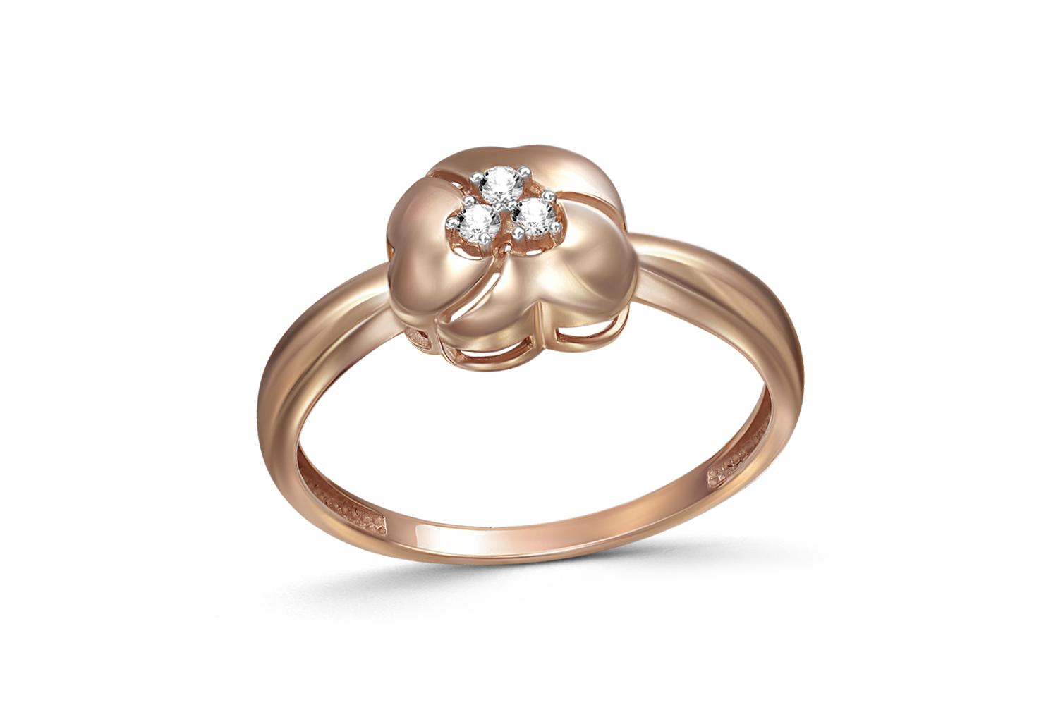 Коллекция: FLEUR. Металл: Золото, цвет: Красный , проба: 585. Вставки: Фианит б/цв, количество 3 шт. , огранка круг, размер 1,5 мм.