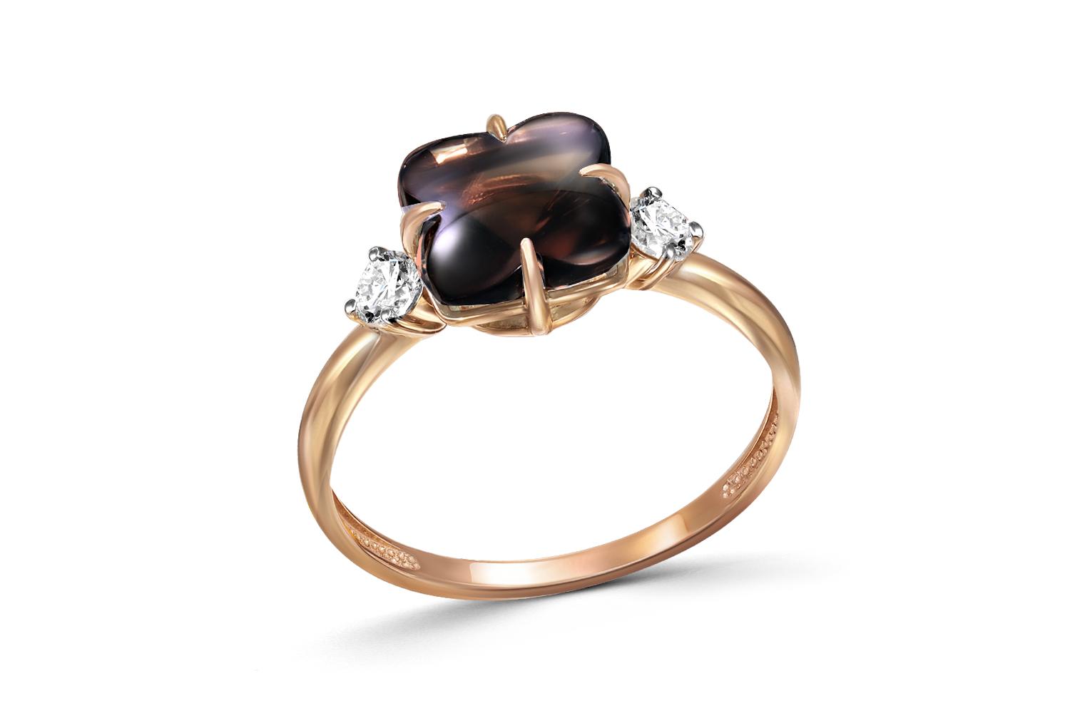 Мастера компании NEWGOLD, приложив всё свое мастерство и искусство, создали для Вас на нашем собственном производстве Кольцо из красного золота с раухтопазом и 2 фианитами.