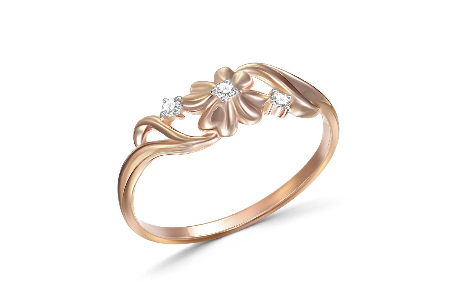 Мастера компании NEWGOLD, приложив всё свое мастерство и искусство, создали для Вас на нашем собственном производстве Кольцо Цветок из красного золота с 3 фианитами.