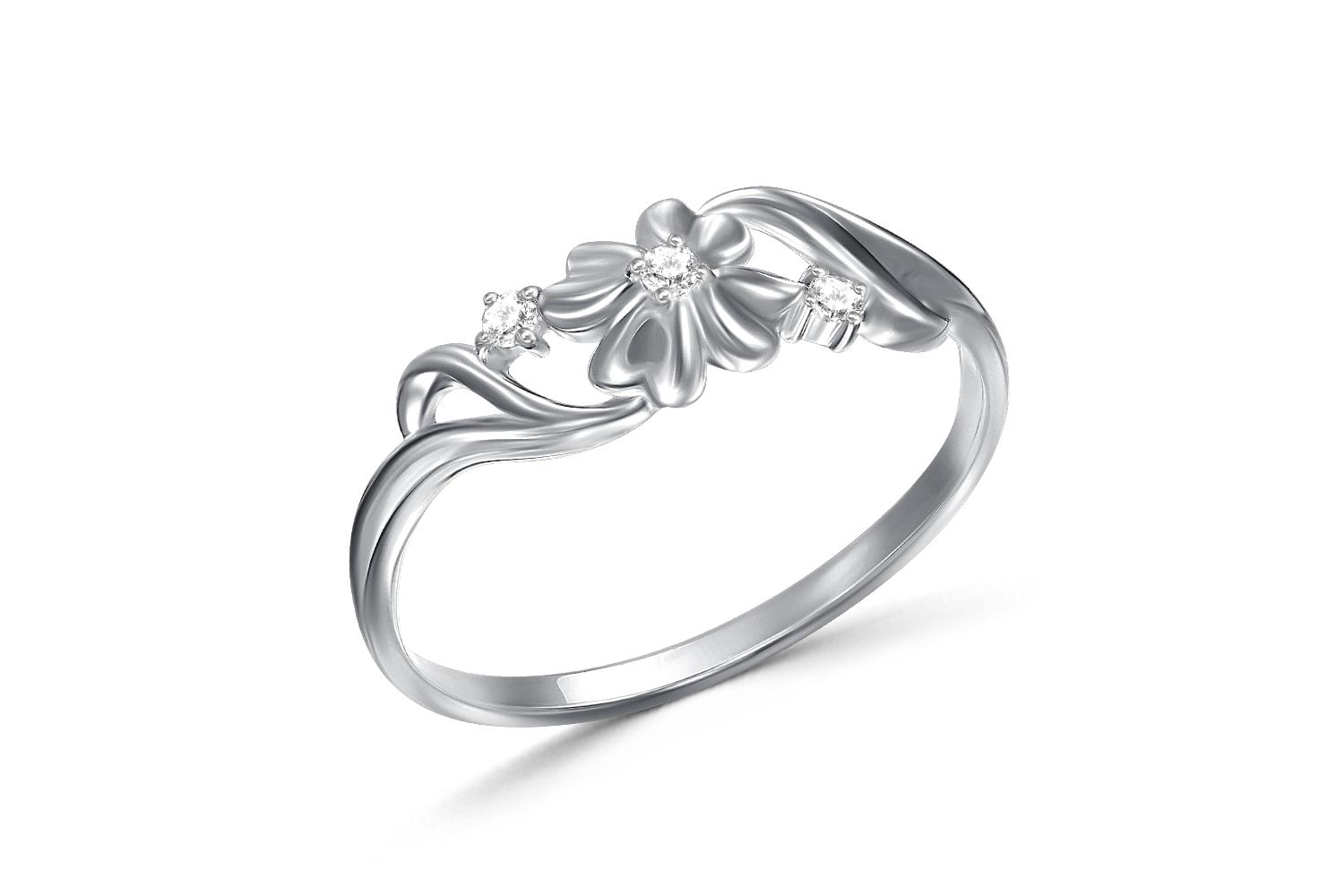 Мастера компании NEWGOLD, приложив всё свое мастерство и искусство, создали для Вас на нашем собственном производстве Кольцо Цветок из белого золота с 3 фианитами.