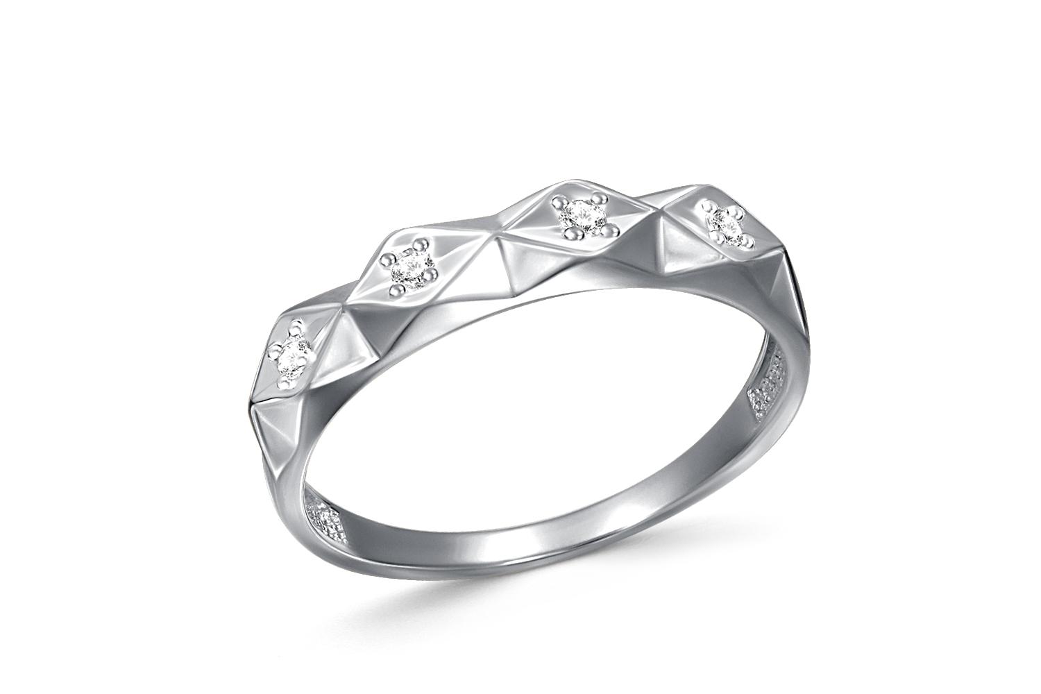 Мастера компании NEWGOLD, приложив всё свое мастерство и искусство, создали для Вас на нашем собственном производстве Кольцо из белого золота с 4 фианитами.