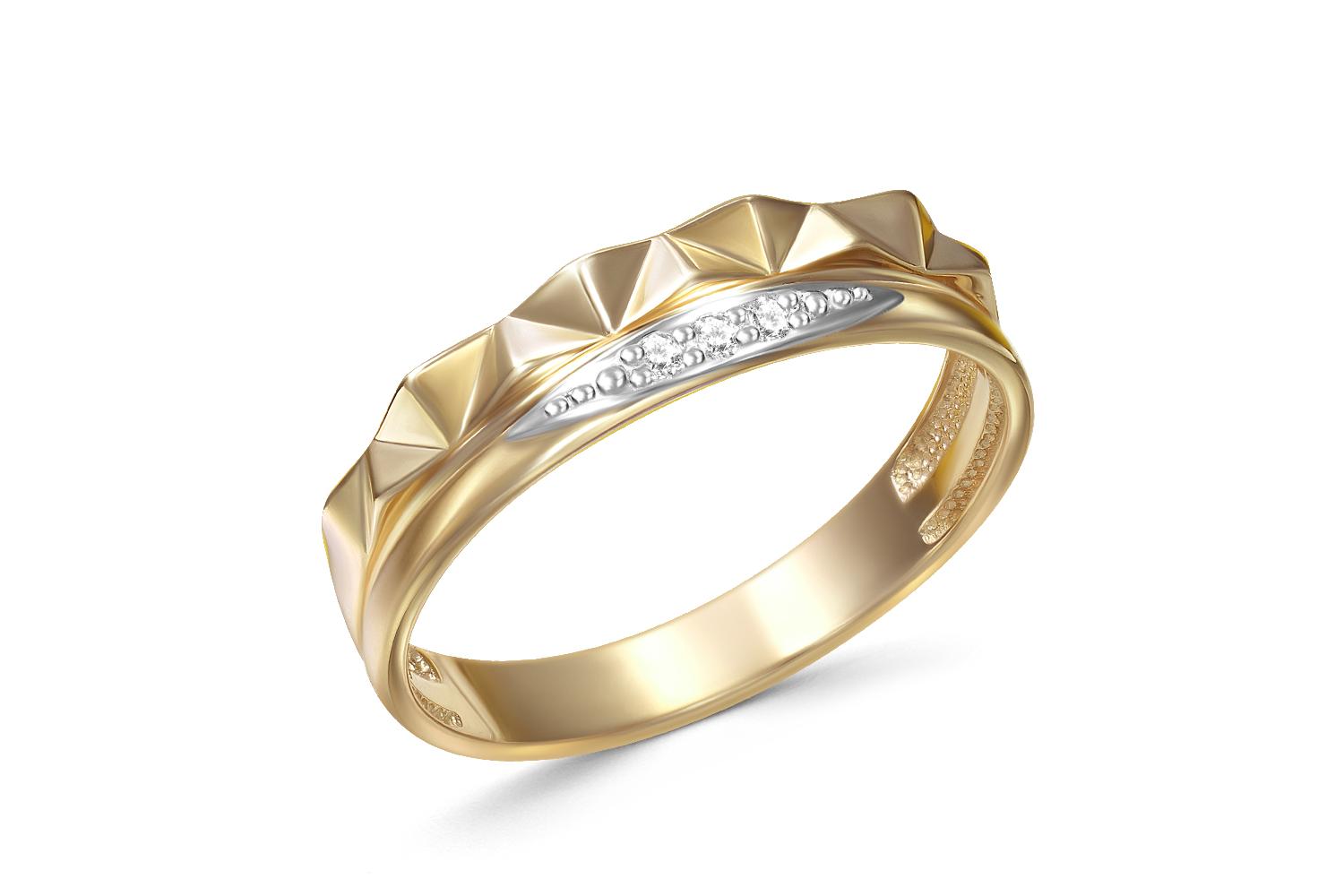 Мастера компании NEWGOLD, приложив всё свое мастерство и искусство, создали для Вас на нашем собственном производстве Кольцо из жёлтого золота с 3 фианитами.