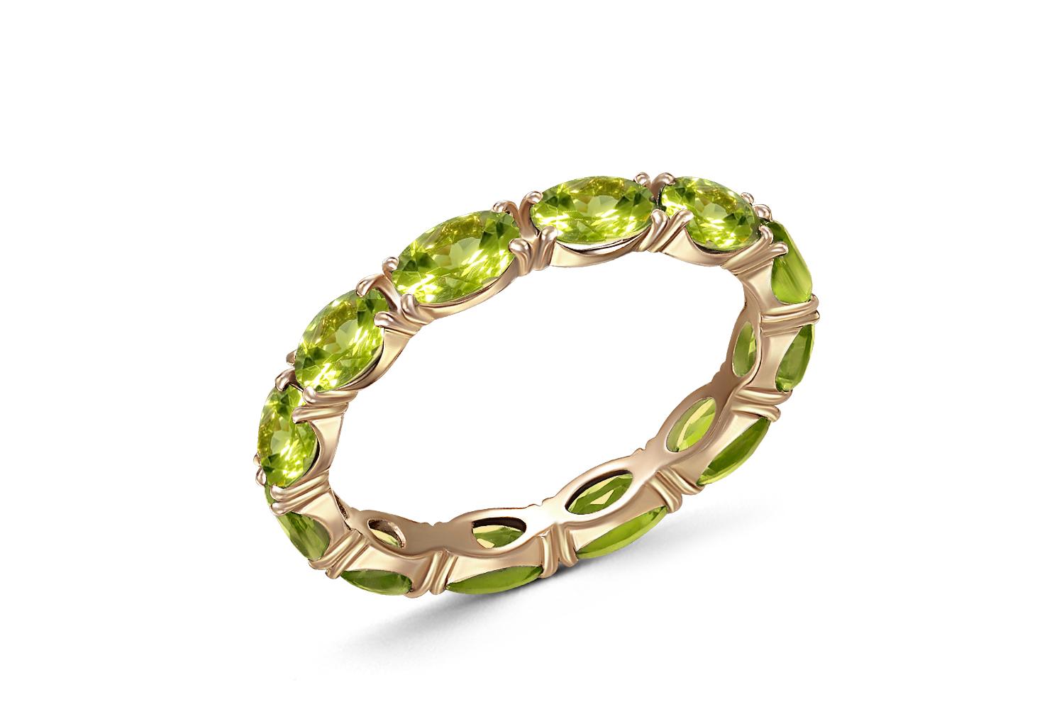 Закажите Кольцо Дорожка из жёлтого золота с 12 хризолитами с получением в Москве через курьерскую службу доставки напрямую с нашего производственного склада завода NEWGOLD!