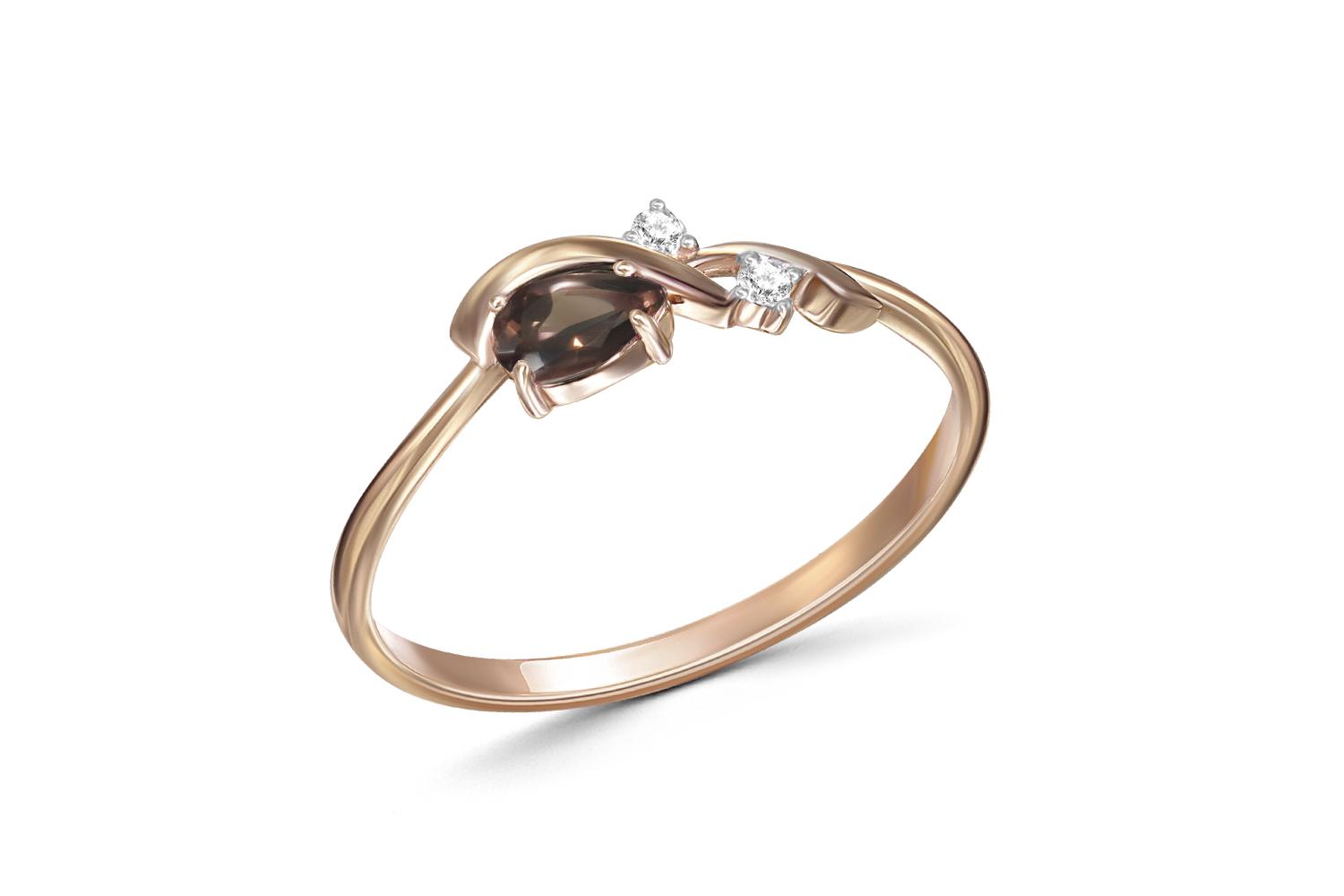 Мастера компании NEWGOLD, приложив всё свое мастерство и искусство, создали для Вас на нашем собственном производстве Кольцо из красного золота с раухтопазом и 2 фианитами.