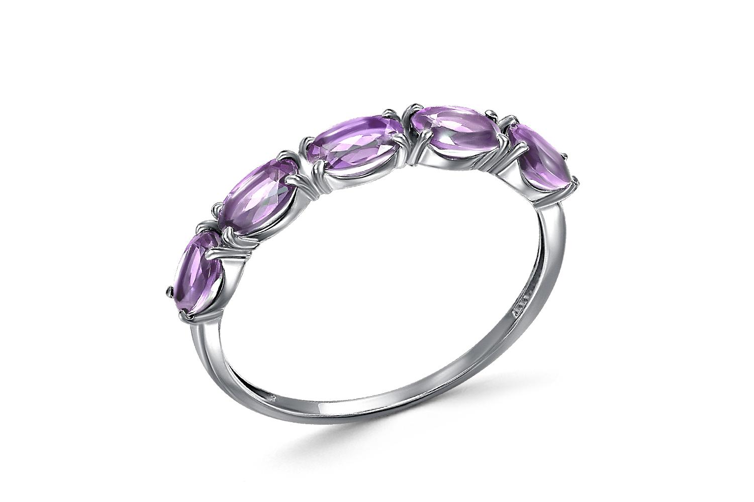 Мастера компании NEWGOLD, приложив всё свое мастерство и искусство, создали для Вас на нашем собственном производстве Кольцо Дорожка из белого золота с 5 аметистами.