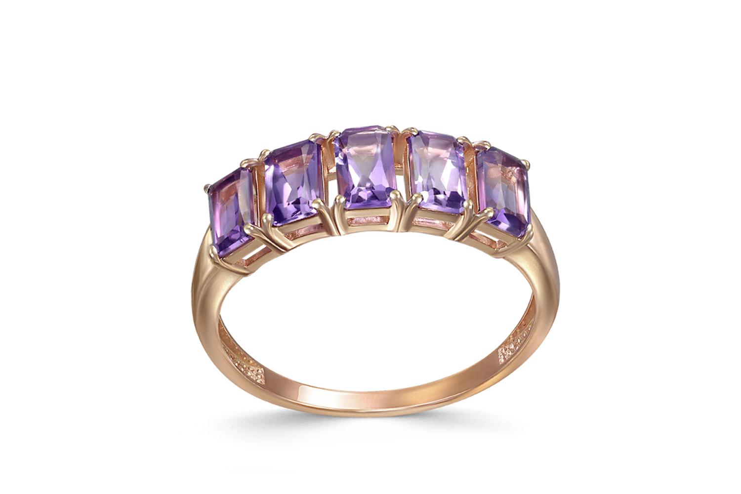 Мастера компании NEWGOLD, приложив всё свое мастерство и искусство, создали для Вас на нашем собственном производстве Кольцо Дорожка из красного золота с 5 аметистами.