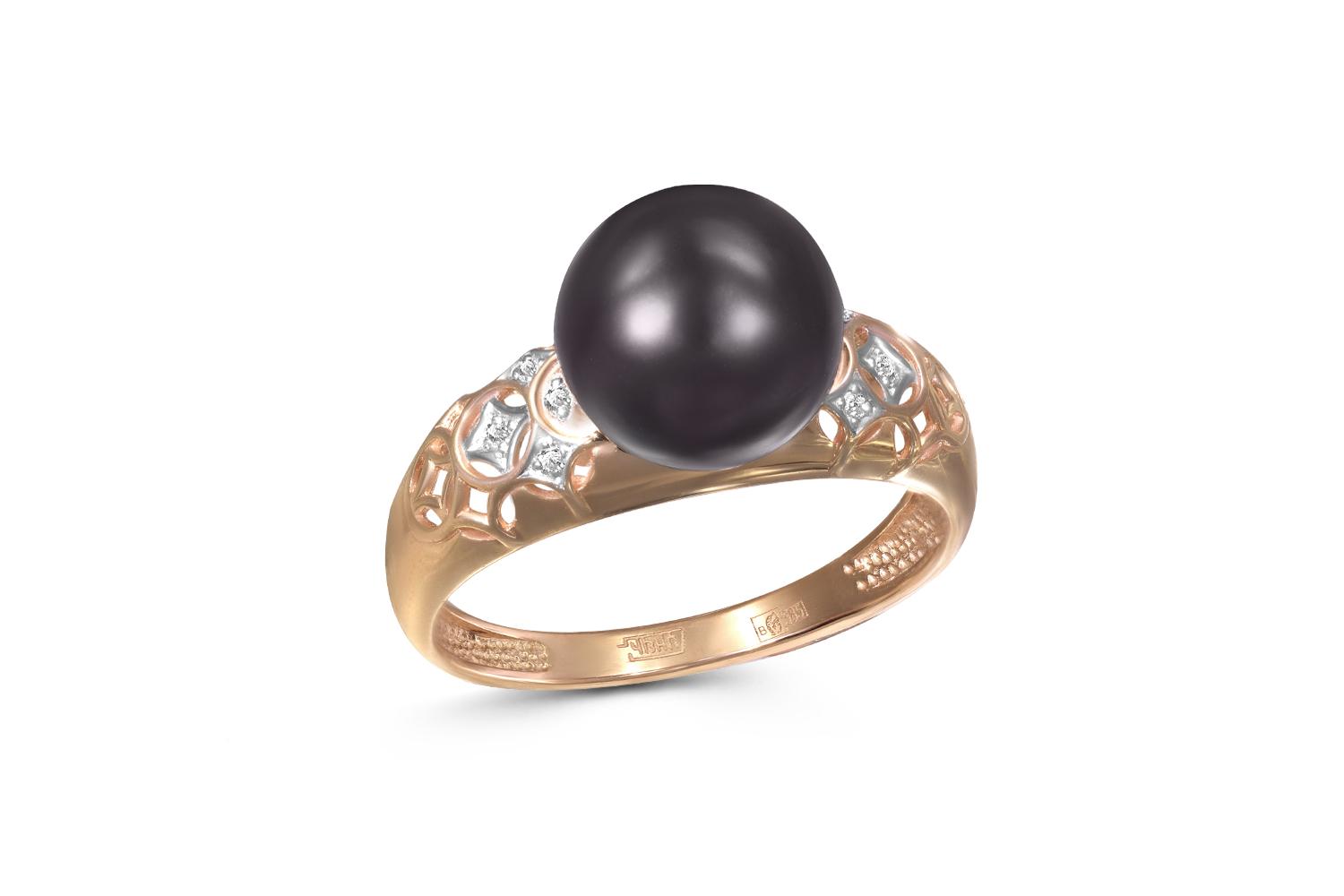 Жемчуг черный культивированный, количество 1 шт., огранка круг, размер 9,5ˣ10 ; Бриллиант, количество 8 шт., огранка Кр-17, размер 1 мм, цвет 2, чистота 2, вес 0,035 карат.