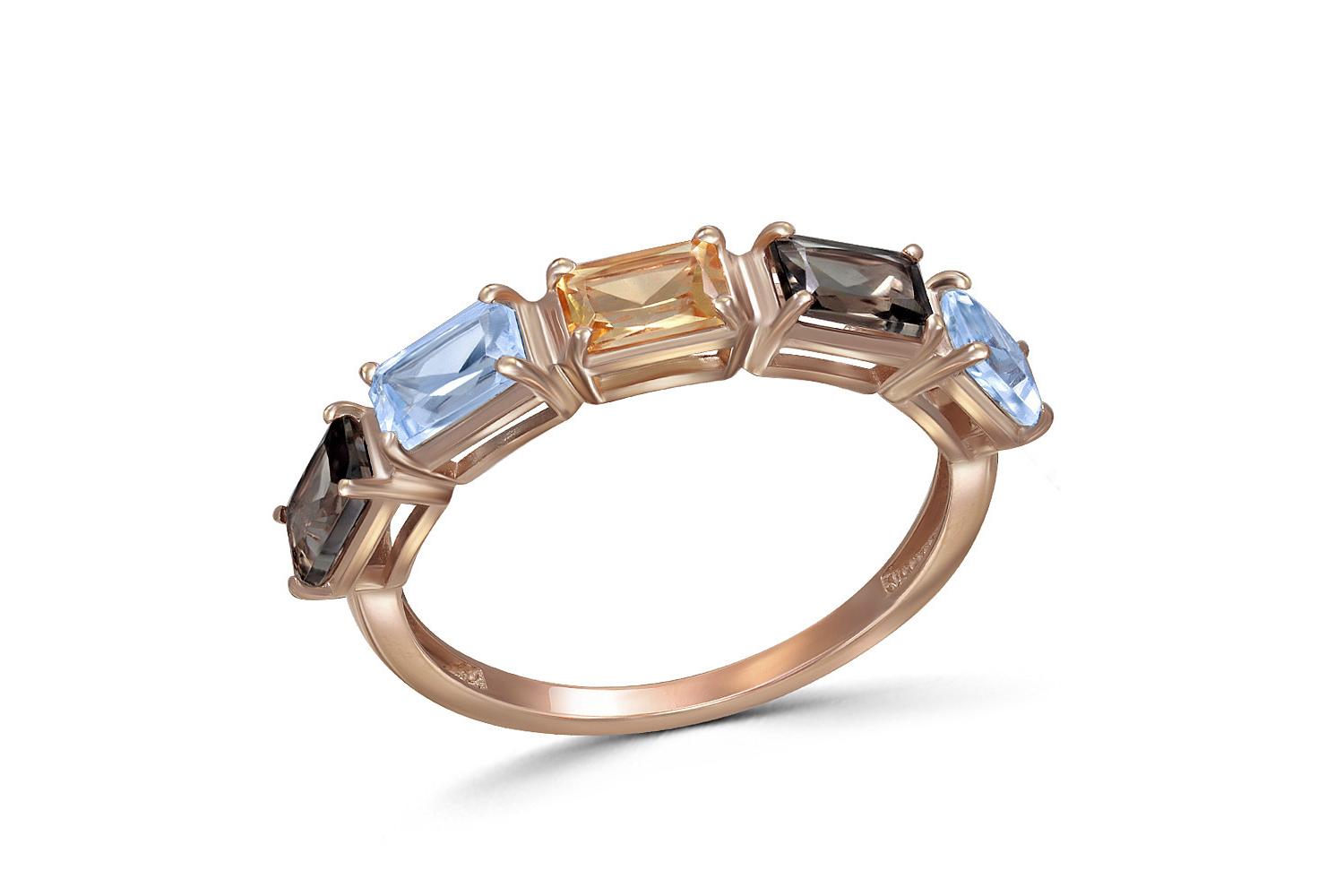 Закажите Кольцо Дорожка из красного золота с раухтопазами, топазами sky и цитрином с получением в Москве через курьерскую службу доставки напрямую с нашего производственного склада завода NEWGOLD!