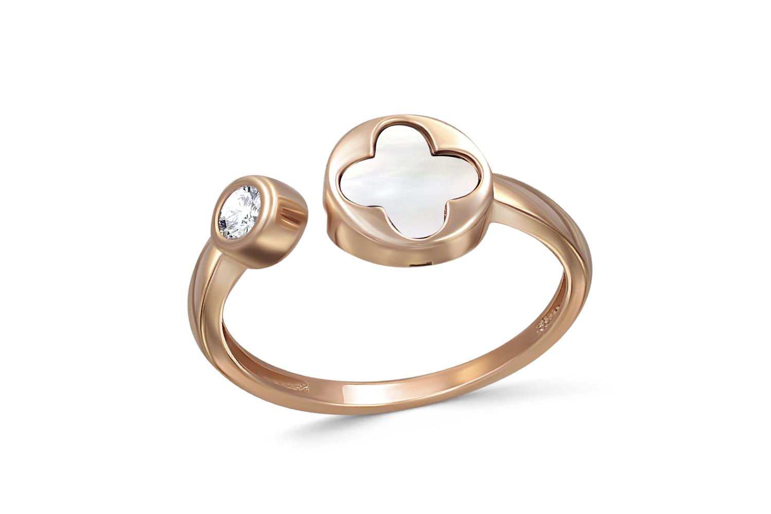 Мастера компании NEWGOLD, приложив всё свое мастерство и искусство, создали для Вас на нашем собственном производстве Кольцо Клевер из красного золота с перламутром и фианитом.