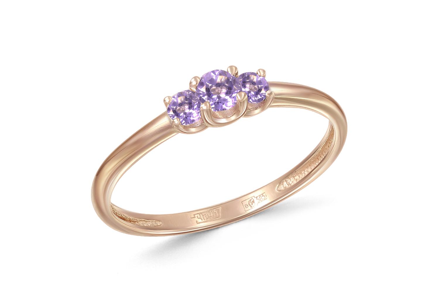 Мастера компании NEWGOLD, приложив всё свое мастерство и искусство, создали для Вас на нашем собственном производстве Кольцо из красного золота с 3 аметистами.