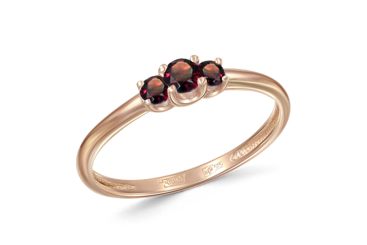 Мастера компании NEWGOLD, приложив всё свое мастерство и искусство, создали для Вас на нашем собственном производстве Кольцо из красного золота с 3 гранатами.