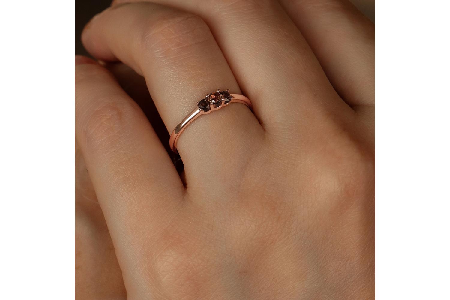 Мастера компании NEWGOLD, приложив всё свое мастерство и искусство, создали для Вас на нашем собственном производстве Кольцо из красного золота с 3 раухтопазами.