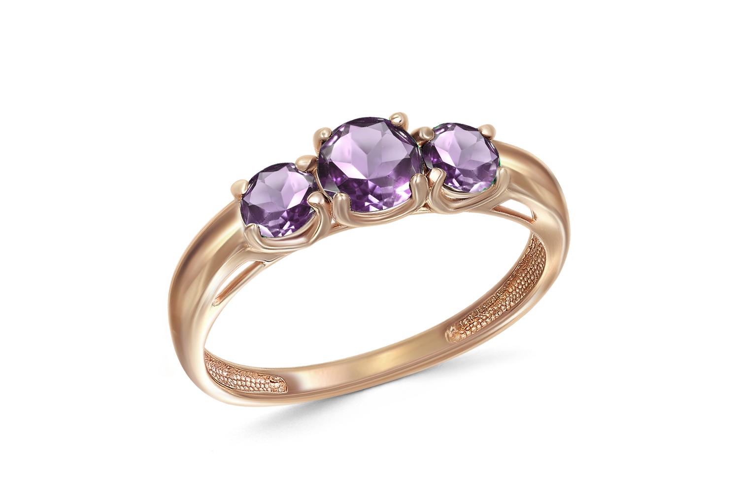 Закажите Кольцо из красного золота с 3 аметистами с получением в Москве через курьерскую службу доставки напрямую с нашего производственного склада завода NEWGOLD!