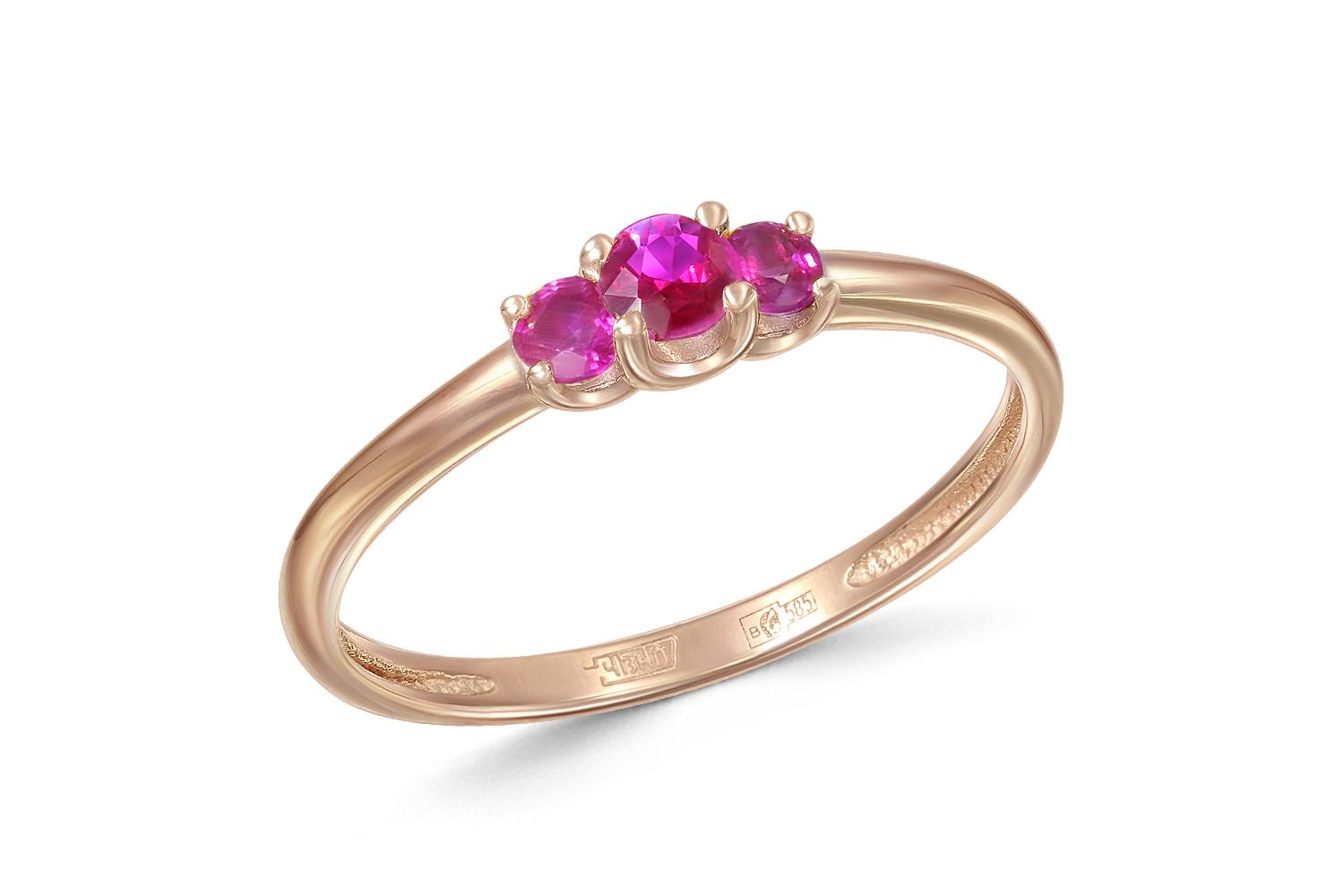 Закажите Кольцо из красного золота с 3 корундами с получением в Москве через курьерскую службу доставки напрямую с нашего производственного склада завода NEWGOLD!