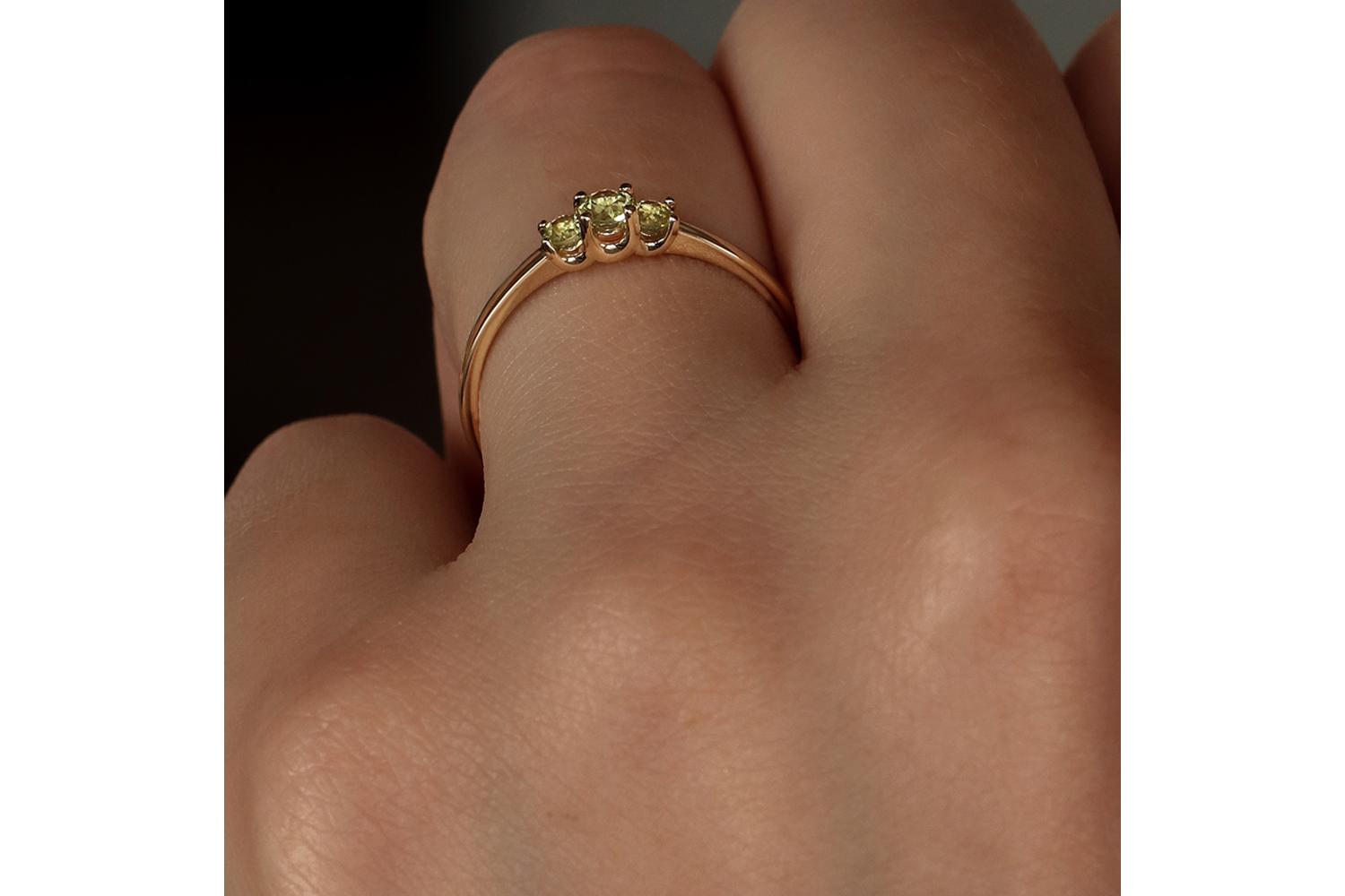 Мастера компании NEWGOLD, приложив всё свое мастерство и искусство, создали для Вас на нашем собственном производстве Кольцо из жёлтого золота с 3 хризолитами.