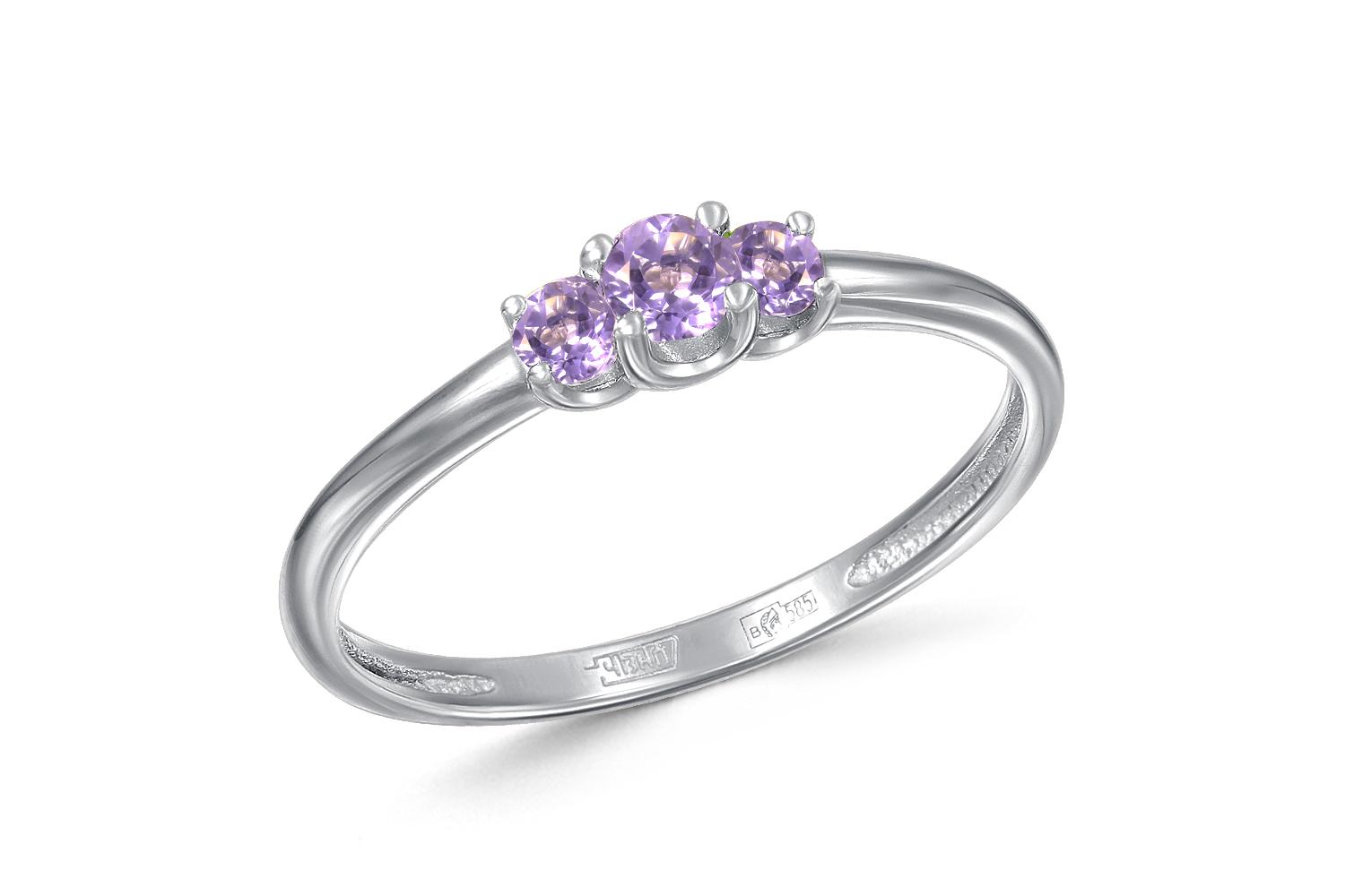 Мастера компании NEWGOLD, приложив всё свое мастерство и искусство, создали для Вас на нашем собственном производстве Кольцо из белого золота с 3 аметистами.