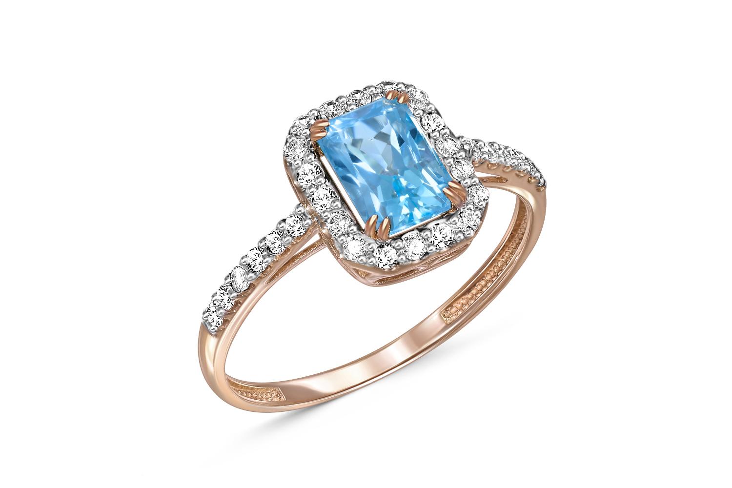Закажите Кольцо из красного золота с топазом swiss и 30 фианитами с получением в Москве через курьерскую службу доставки напрямую с нашего производственного склада завода NEWGOLD!