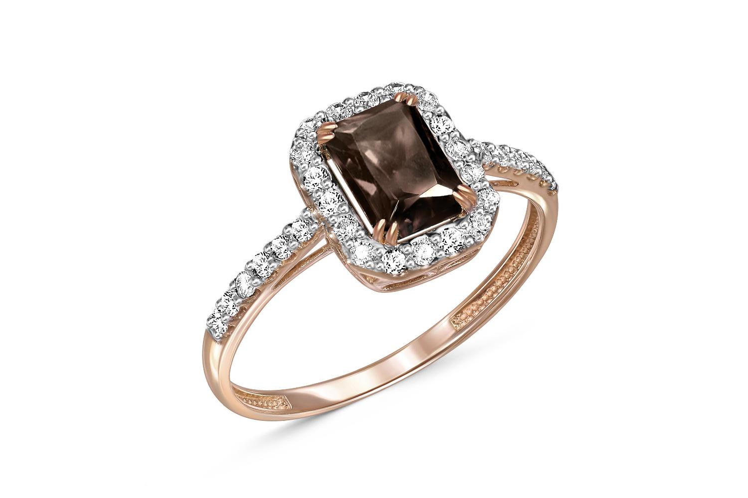 Мастера компании NEWGOLD, приложив всё свое мастерство и искусство, создали для Вас на нашем собственном производстве Кольцо из красного золота с раухтопазом и 30 фианитами.
