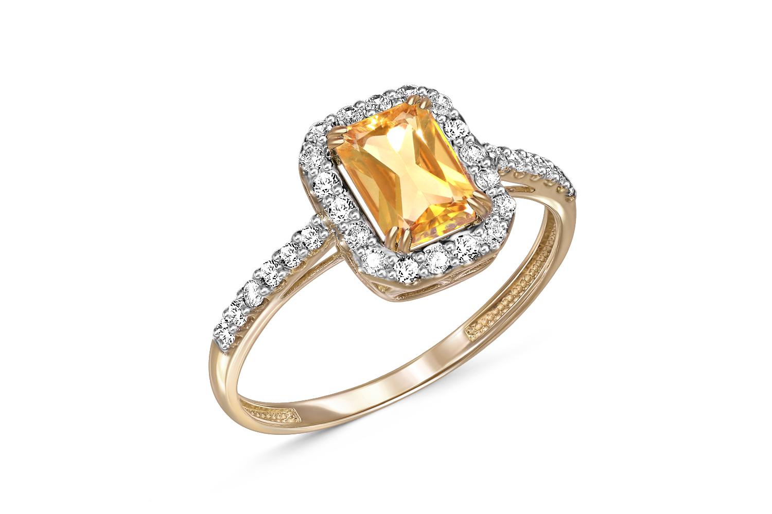 Мастера компании NEWGOLD, приложив всё свое мастерство и искусство, создали для Вас на нашем собственном производстве Кольцо из жёлтого золота с цитрином и 30 фианитами.