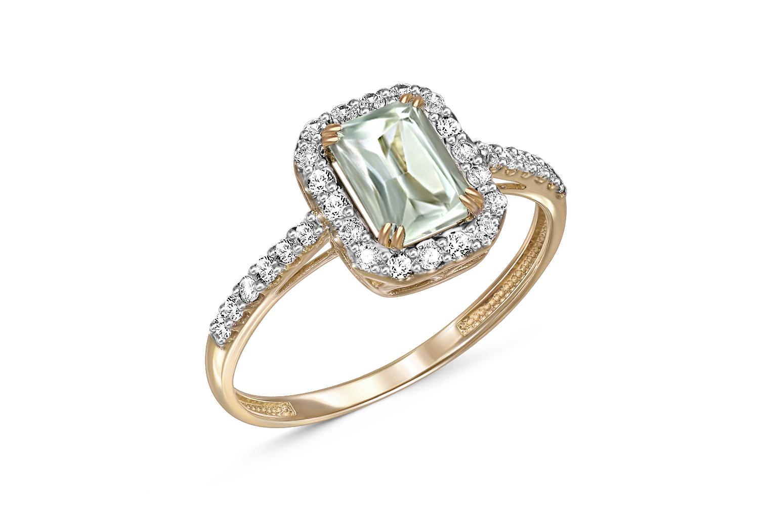 Аметист зеленый натуральный, количество 1 шт., огранка октагон, размер 7ˣ5 ; Фианит б/цв, количество 30 шт., огранка круг, размер 1,25 мм