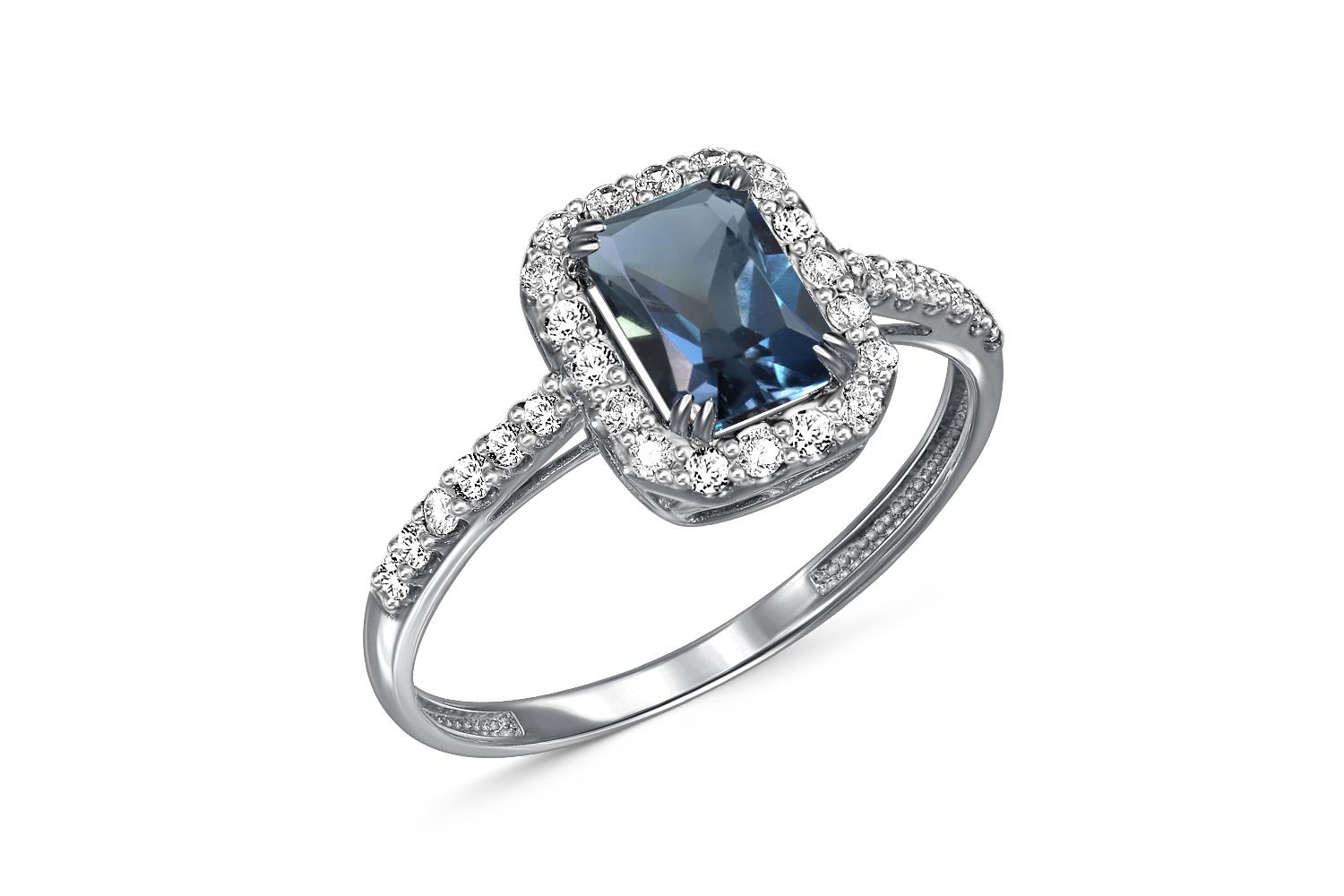 Мастера компании NEWGOLD, приложив всё свое мастерство и искусство, создали для Вас на нашем собственном производстве Кольцо из белого золота с топазом лондон и 30 фианитами.