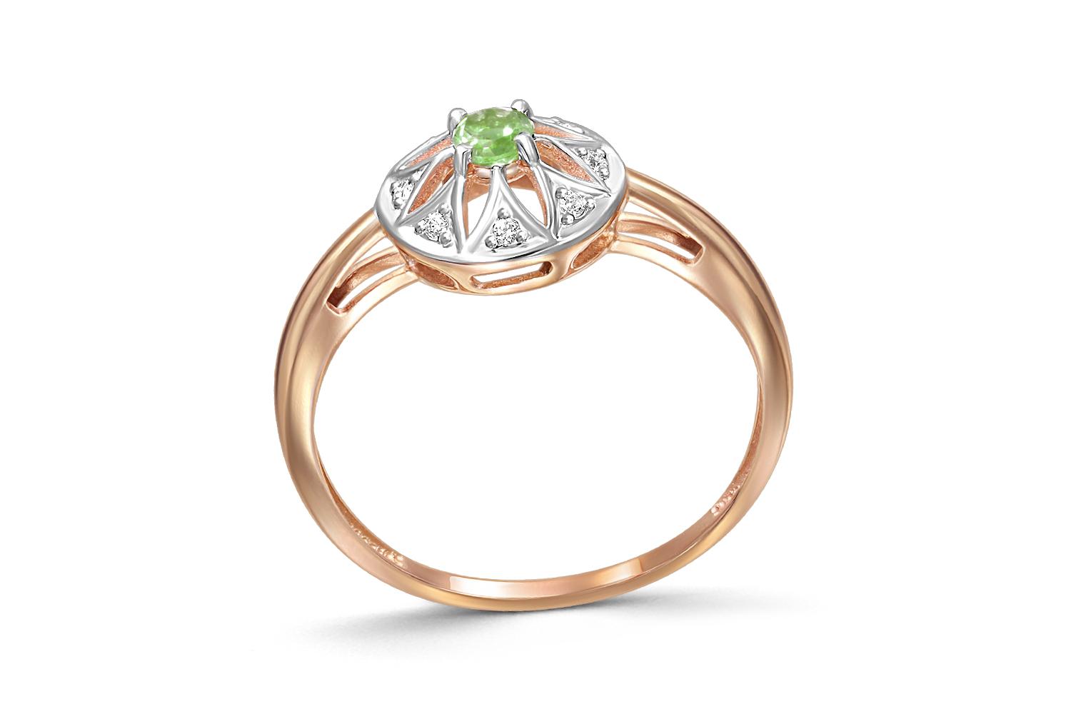 Мастера компании NEWGOLD, приложив всё свое мастерство и искусство, создали для Вас на нашем собственном производстве Кольцо Цветок из красного золота с хризолитом и 8 фианитами.