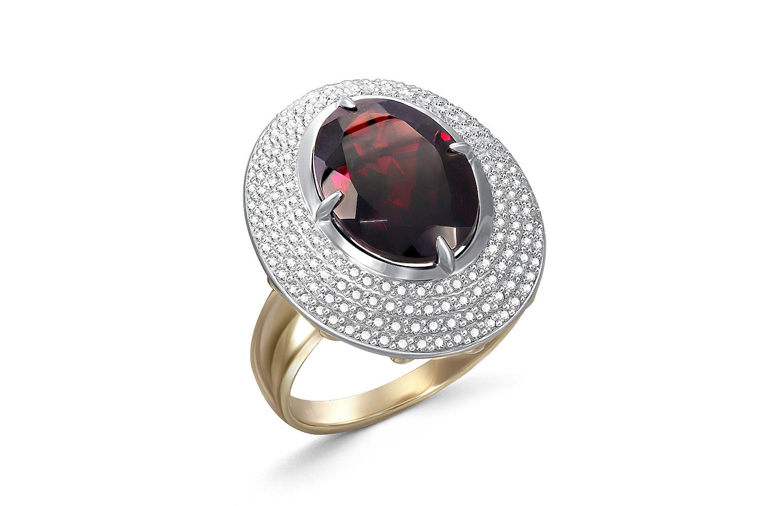 Мастера компании NEWGOLD, приложив всё свое мастерство и искусство, создали для Вас на нашем собственном производстве Кольцо из жёлтого золота с гранатом и 184 бриллиантами.